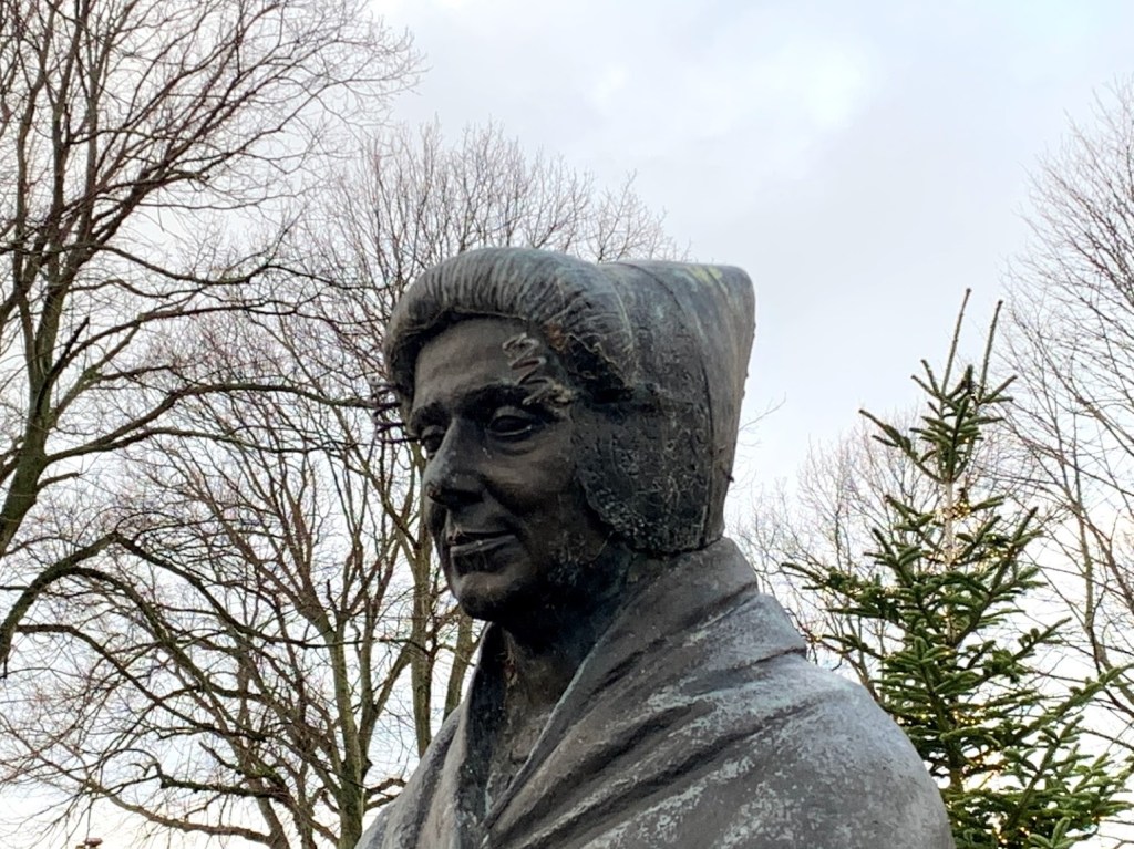 Ik kwam haar tegen in Ellewoutsdijk (Ellesdiek op z’n Zeeuws), een dorp in het zuidelijkste puntje van Zuid-Beveland. Ze hing als poster op een raam met daarbij de woorden Vrijheid, Gelijkheid en Broederschap.