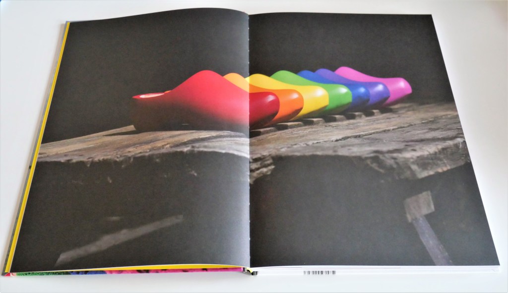 Fel gekleurde klompen met stompe neus, de dagelijkse draagklompen die je droeg als je op het land werkte.
