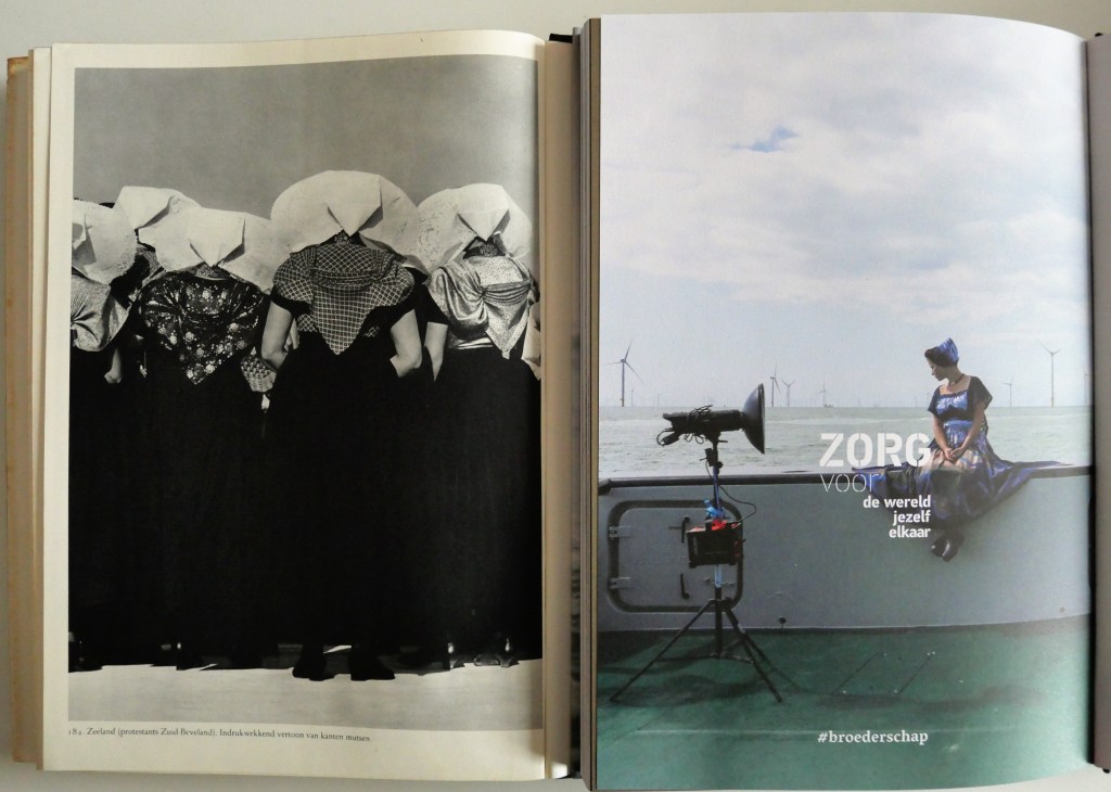 Wat heeft dit alles met mijn liefde voor textiel te maken (want daar gaat dit blog over)? Omdat ik een grote interesse heb in de geschiedenis van streekdracht ging ik deze week op zoek naar het fotoboek van Cas Oorthuys ‘Klederdrachten’ in de serie ‘De schoonheid van ons land’ uit 1962. Ik wou het al lang hebben, kocht een prachtig exemplaar voor een prikkie via boekwinkeltjes.nl en gisteravond werd het bezorgd. Het is een boek vol zwart-wit foto’s, gemaakt in een tijd dat er nog volop streekdracht werd gedragen in bepaalde plaatsen in Nederland. In het boek staan authentieke foto’s van mannen en vrouwen die het toen nog heel gewoon vonden om dagelijks dracht te dragen. Je kunt zien dat ze er trots op zijn. Het is een bijzonder boek over mensen die hun dagelijks werk uitvoerden, vol echtheid, vol vreugde en droefenis. Ook de Zeeuwse dracht staat er in.