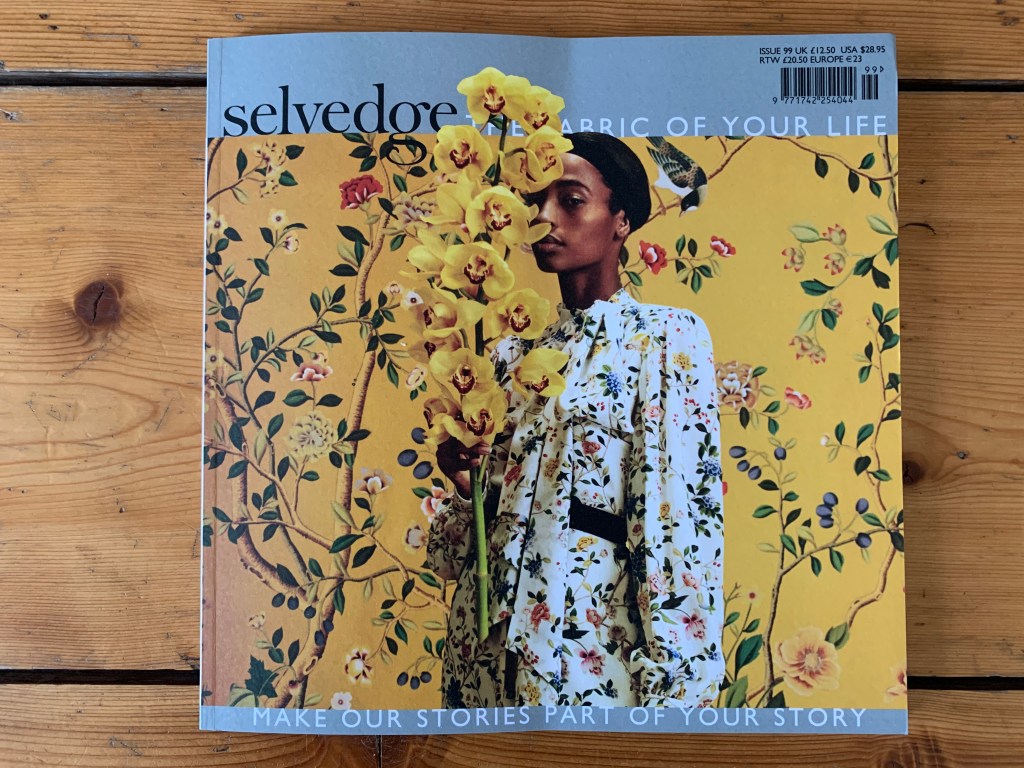 Sinds begin 2003 heb ik een abonnement op het Engels textieltijdschrift Selvedge, dat toen voor het eerst uitkwam. Het is opgericht door Polly Leonard. Na haar design opleiding aan de Glasgow School of Art haalde ze een master aan de Tyler School of Art in Philadelphia en gaf ze tien jaar les in ‘textiles’. Het tijdschrift is prachtig uitgevoerd met schitterende foto’s en goed geschreven artikelen. Allerlei aspecten van textiel worden glorieus gepresenteerd. Selvedge is inspirerend en elk jaar verleng ik mijn abonnement.