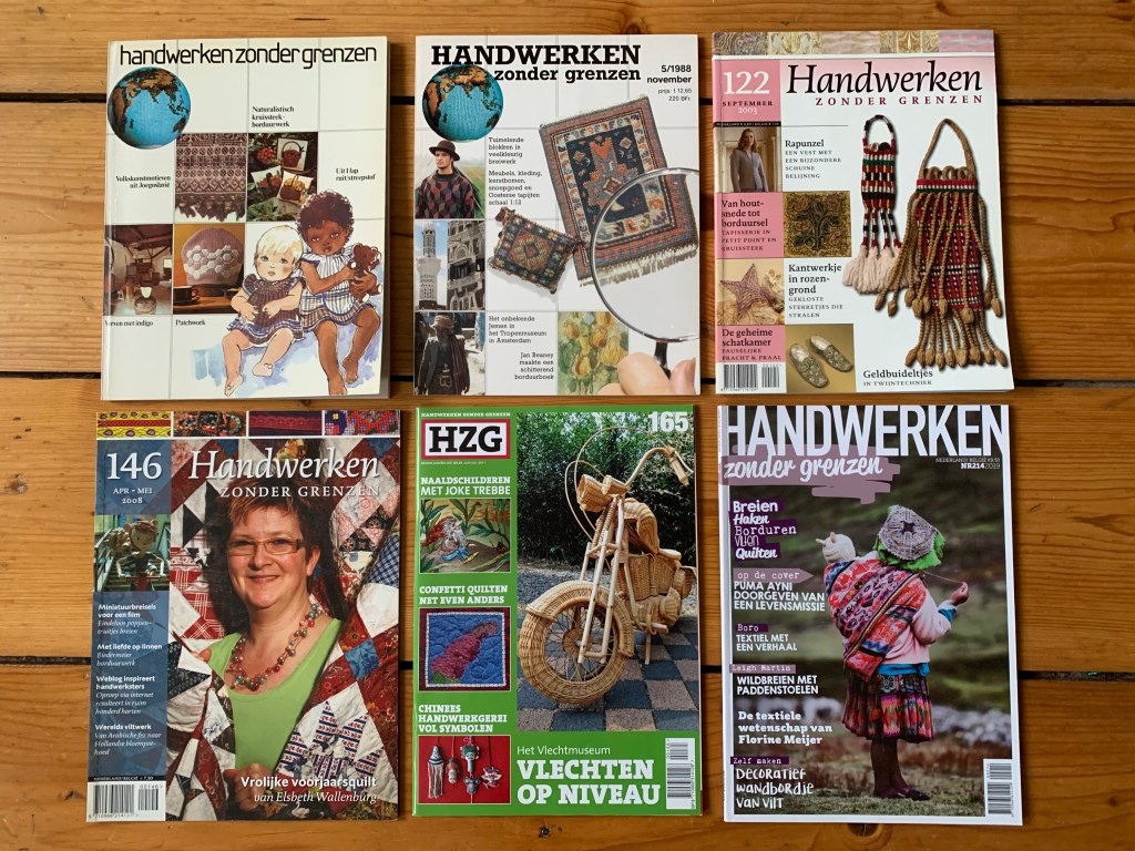 Tegelijkertijd had ik in die jaren een abonnement op het Nederlands tijdschrift Handwerken zonder Grenzen (HzG). Dat begon met een vondst. Tegenover het huis waar ik toen woonde, stond een grote doos op straat met veel jaargangen HzG. Ik droeg de doos naar binnen, leerde het tijdschrift kennen en nam een abonnement. Het blad stond onder redactie van Henriette Beukers; ze gaf het vanaf 1978 samen met haar man Henk Beukers 25 jaar lang uit. Aanleiding was hun eigen collectie met textiel uit de hele wereld, gekocht tijdens hun reizen, die ze wilden delen met liefhebbers. Veel kennis en kunde was er te vinden in die jaren. Beukers & Beukers wàren textiel; door hun grote verzameling en hun kunde hebben ze mijn textielliefde gestimuleerd.