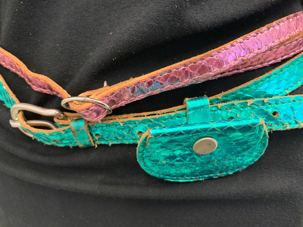 Bij de outfit van Mac & Maggie zaten twee glimmende ceintuurtjes. Even waande ik me in Studio 54 in New York en zag ik haar dansen op discomuziek.