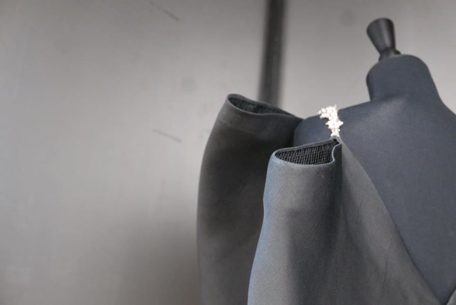 Vanaf het begin dat je in de tentoonstellingsruimte loopt, word je omgeven door grijze wanden en zwarte vloeren en op wat kleur na door zwarte kledingstukken, geweldig uitgelicht.