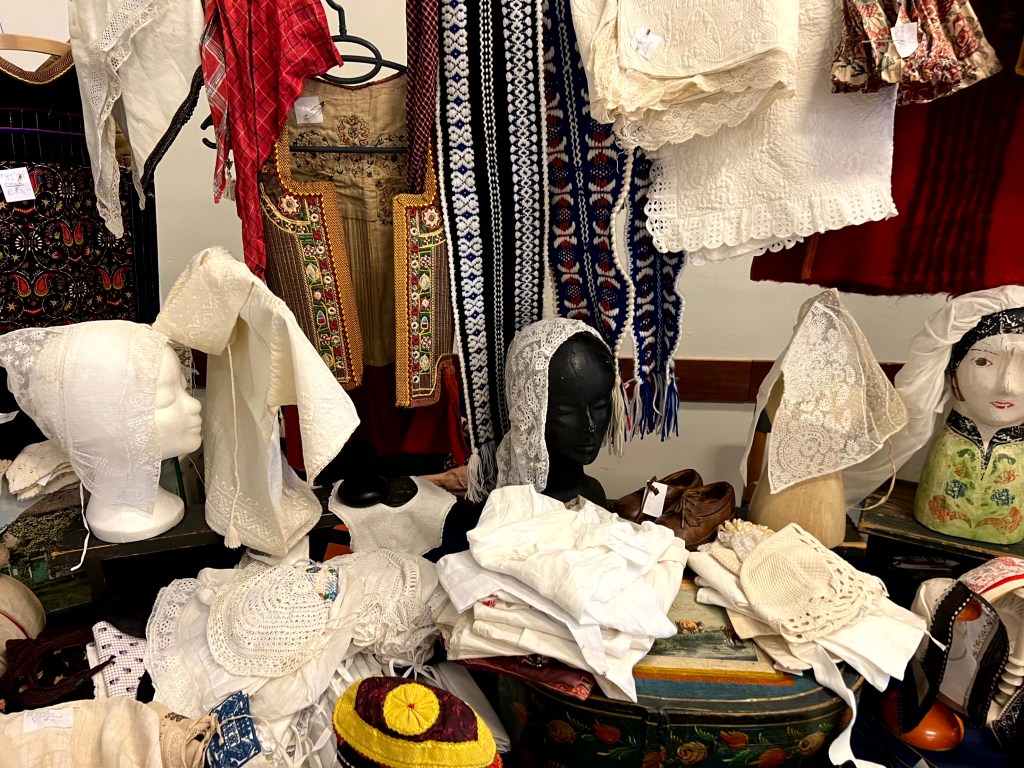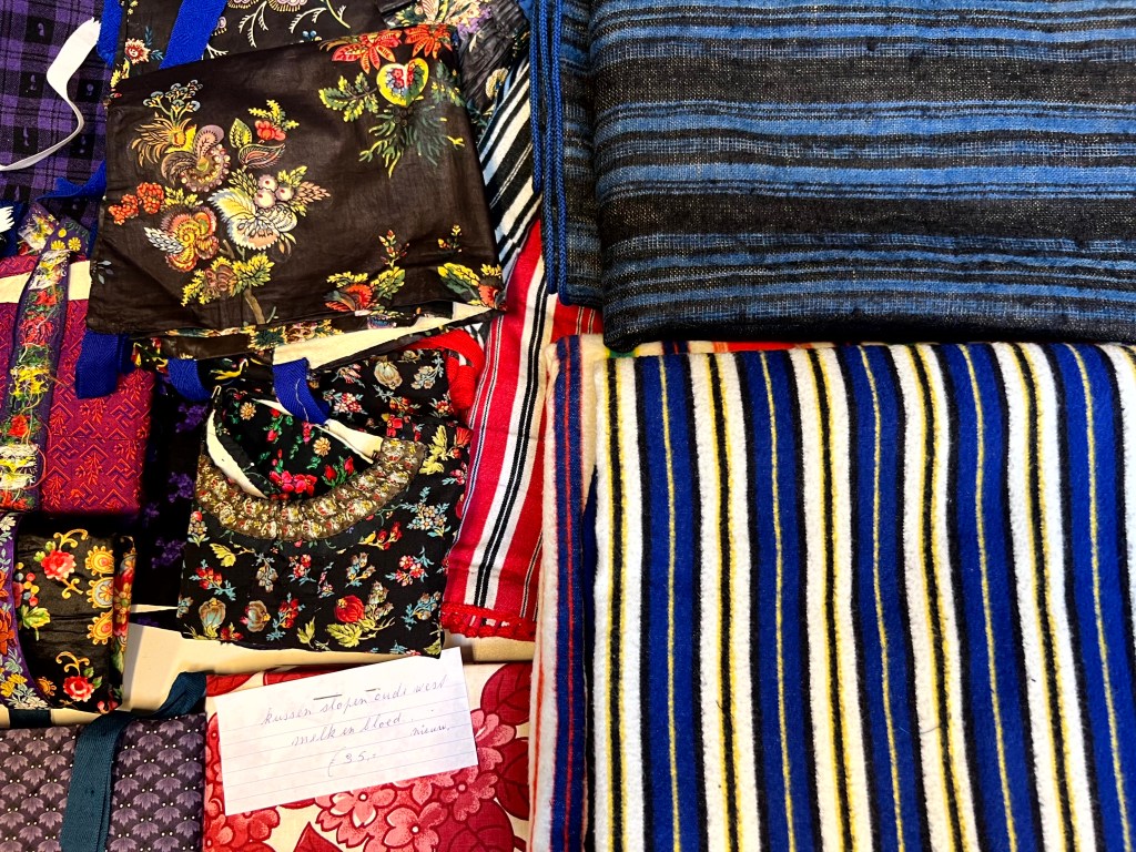 Van streekdracht tot exotica, hoeden, petten en zelfs dameskorsetten. Tafels vol schitterende en vaak zeldzame tweedehands boeken en bladen die voor een habbekrats naar de echte textielliefhebbers gingen.
