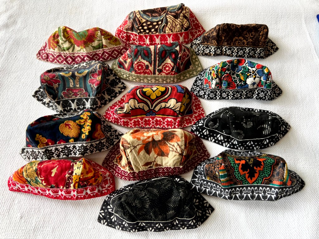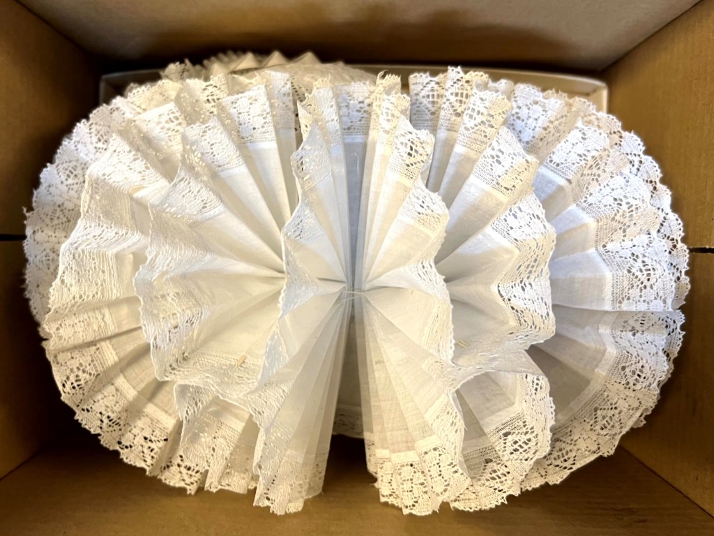 Geplooide mutsen die op origami leken van de Veluwse dracht.