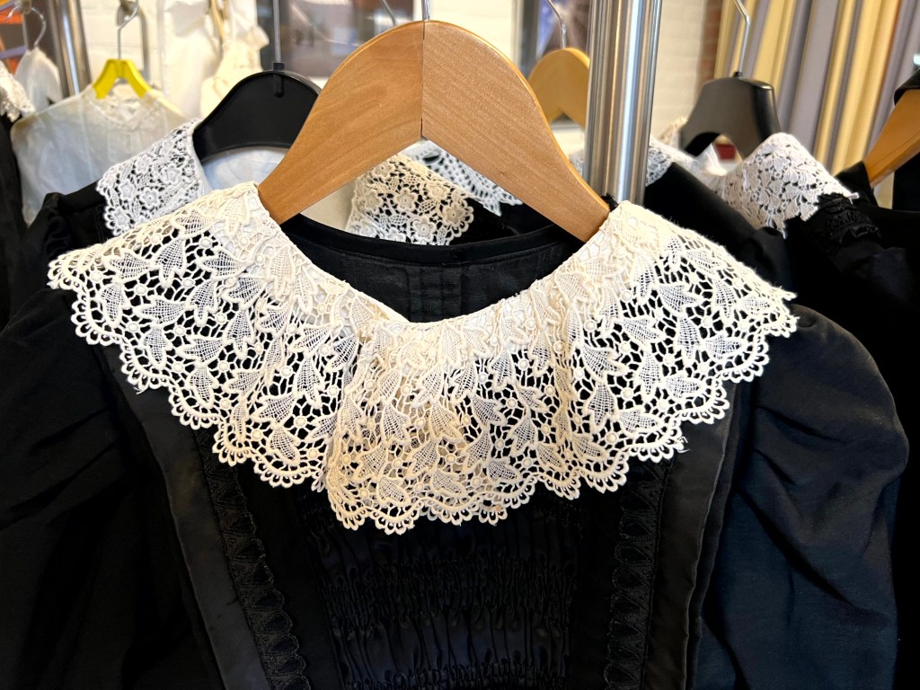 Kanten kraagjes op strenge zwarte jurken uit Twente.