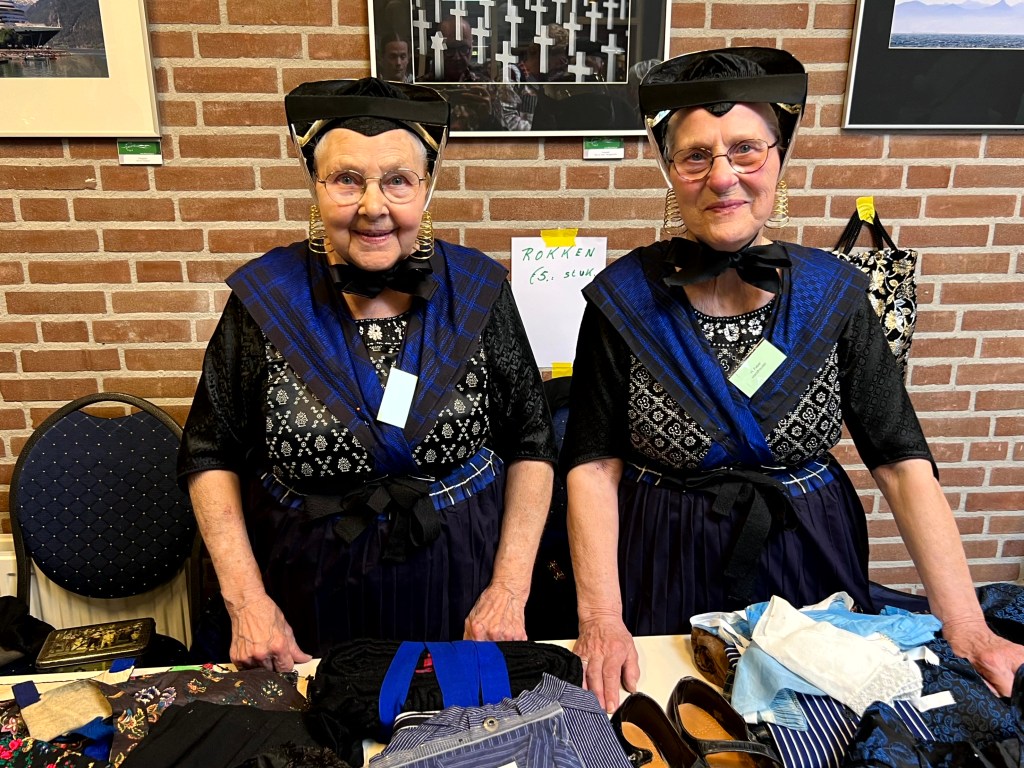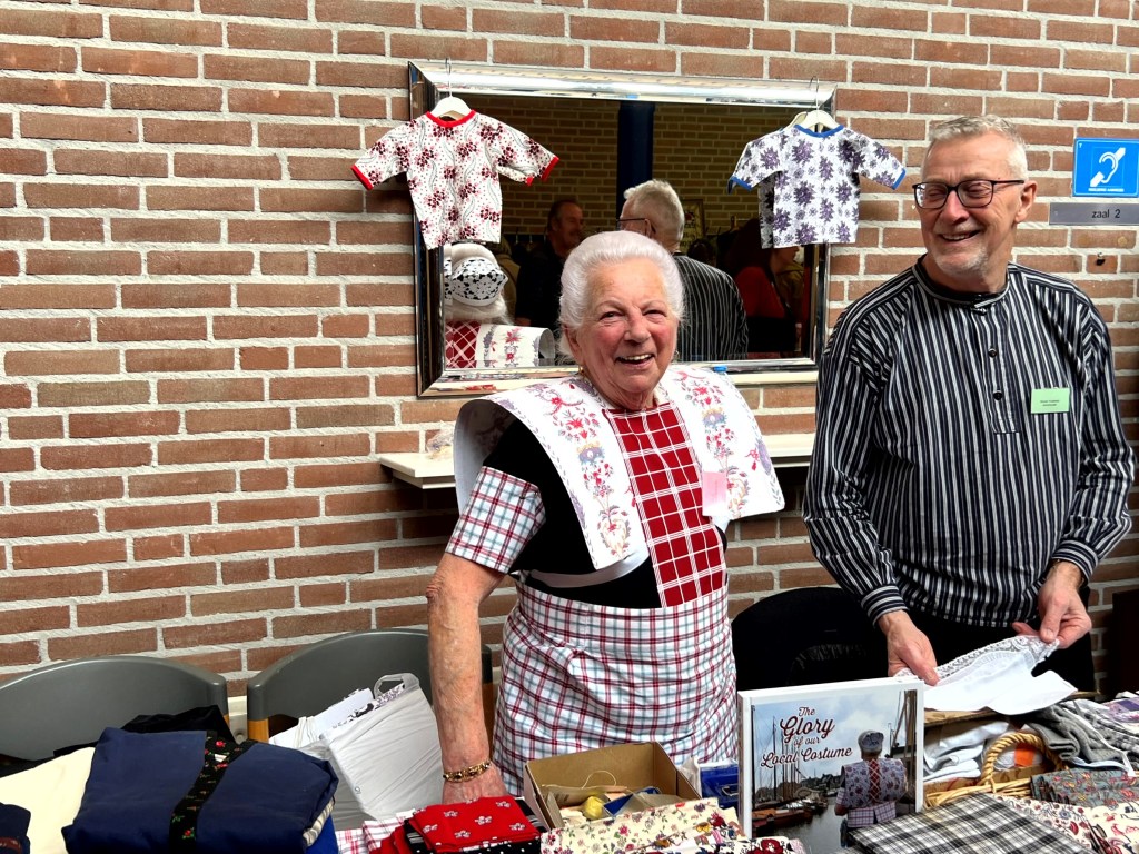 De dames Aaltje Hooikammer-de Boer en Hendrikje Faber-de Boer uit Staphorst stonden te glimmen achter hun tafel vol kleurrijke stoffen.
