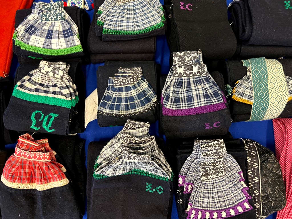 Hun donker gestreepte rokken en kleurrijke kraplappen vol stipwerk en bloemen gingen grif van de hand.