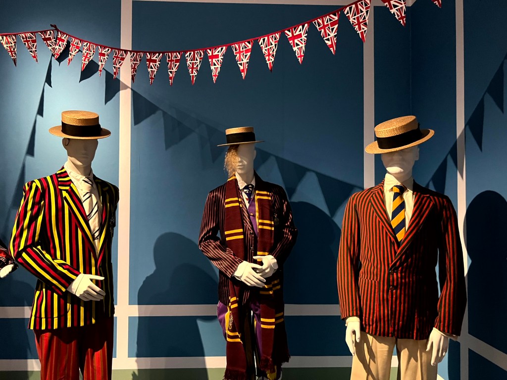 Studenten in gestreepte pakken onder slingers van Engelse vlaggetjes zijn op weg naar een bootrace op de Thames.