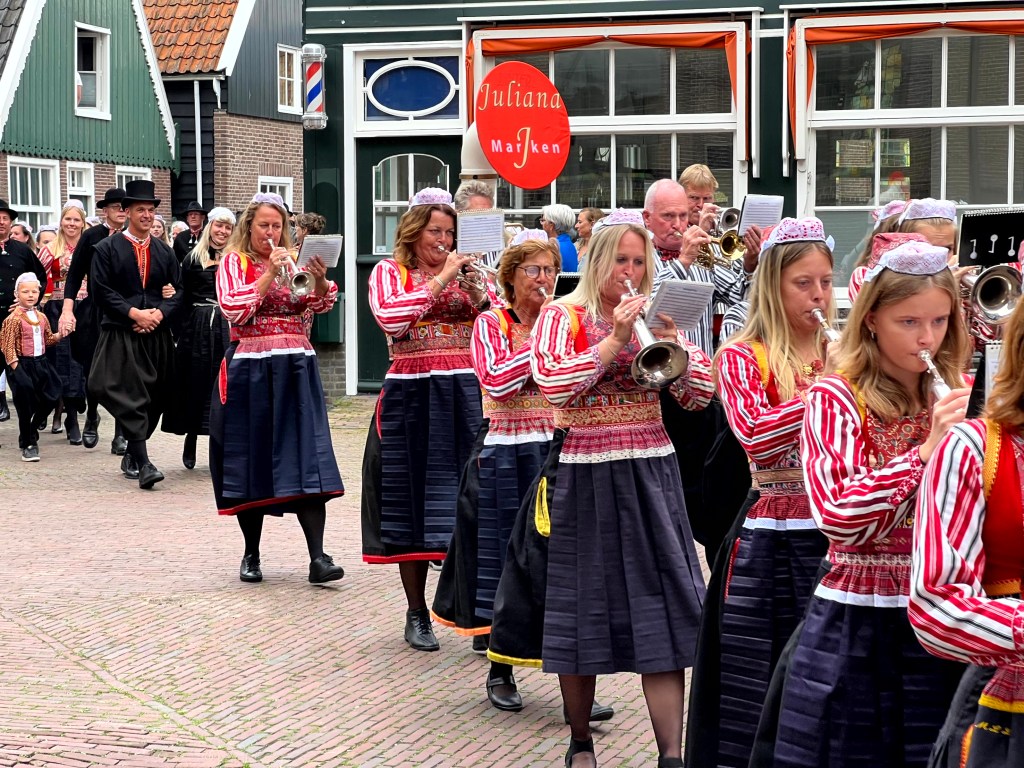 De fanfare zette in met het Marker volkslied dat luid meegezongen werd. Het feest kon beginnen met zang en dans.