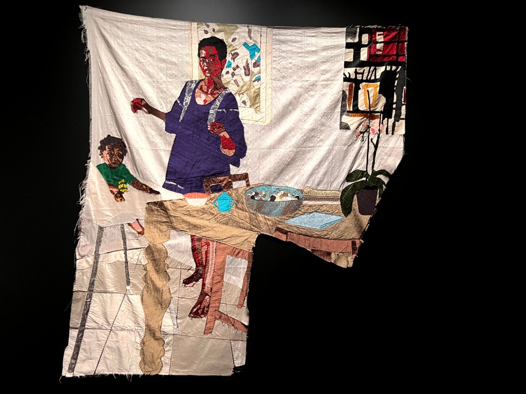 Bij het thema ‘moederschap’ sprak het wandkleed van zijde met de titel  ‘Mother and Child’ van Billie Zangewa uit 2015 mij zeer aan. Een huiselijk tafereel waarin je kunt zien hoe belangrijk het vak van huisvrouw en moeder is om onze samenleving soepel te laten lopen.