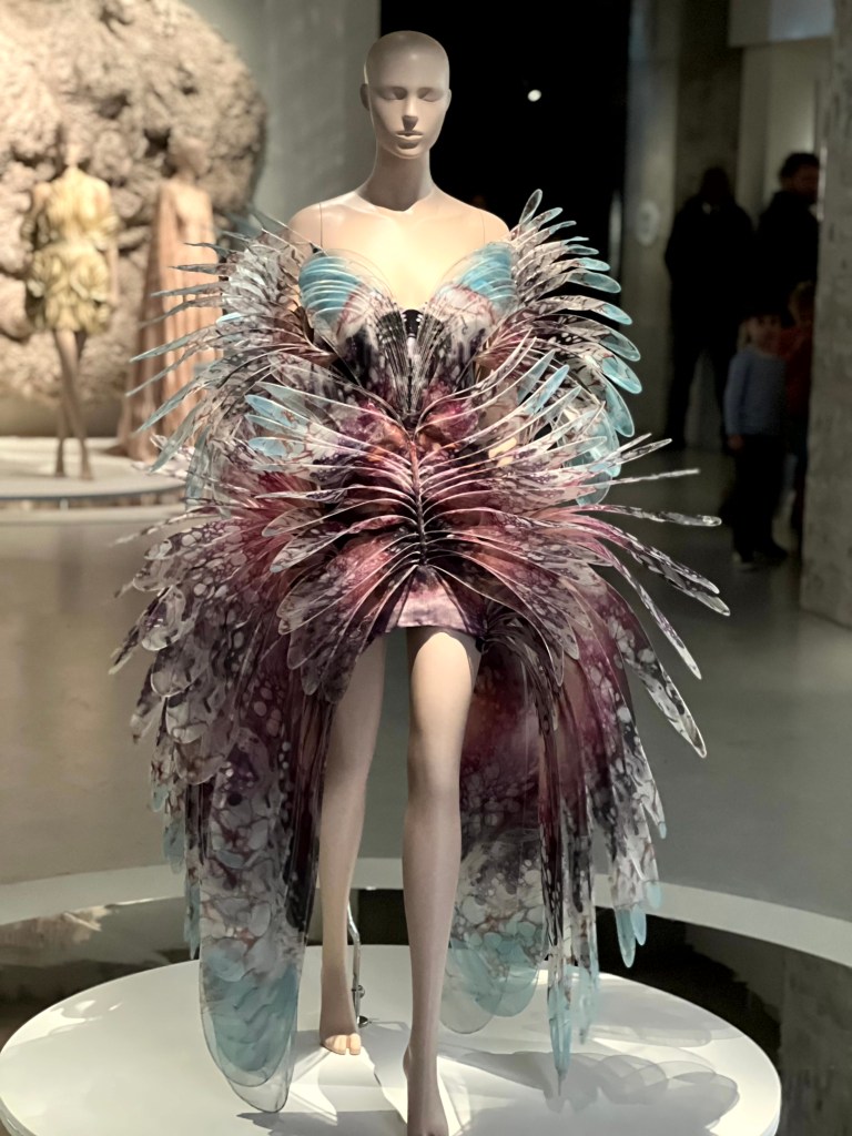 Op de eerste dag bezochten we het Musée des Arts Décoratifs om de tentoonstelling ‘Sculpting the Senses’ van ‘onze Nederlandse’ Iris van Herpen te zien. Ik heb haar collecties vanaf het begin van haar carrière gevolgd. Om alles achter elkaar te zien, met haar inspiratiebronnen erbij, was, zoals Engelsen zo treffend zeggen: mindblowing!
