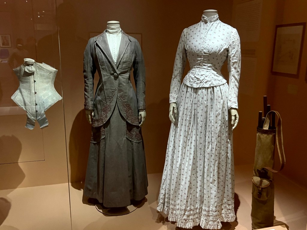 De geschiedenis van zwemkleding is te zien in een volgende ruimte. Voor dames in de 19 de eeuw zou het ongepast zijn geweest om in een bikini het water in te gaan. De ontwikkeling is duidelijk te zien in de opstelling: van een zwemjurk die alles bedekt, via een soort broekbadpak naar de bikini uit de zestiger jaren.
