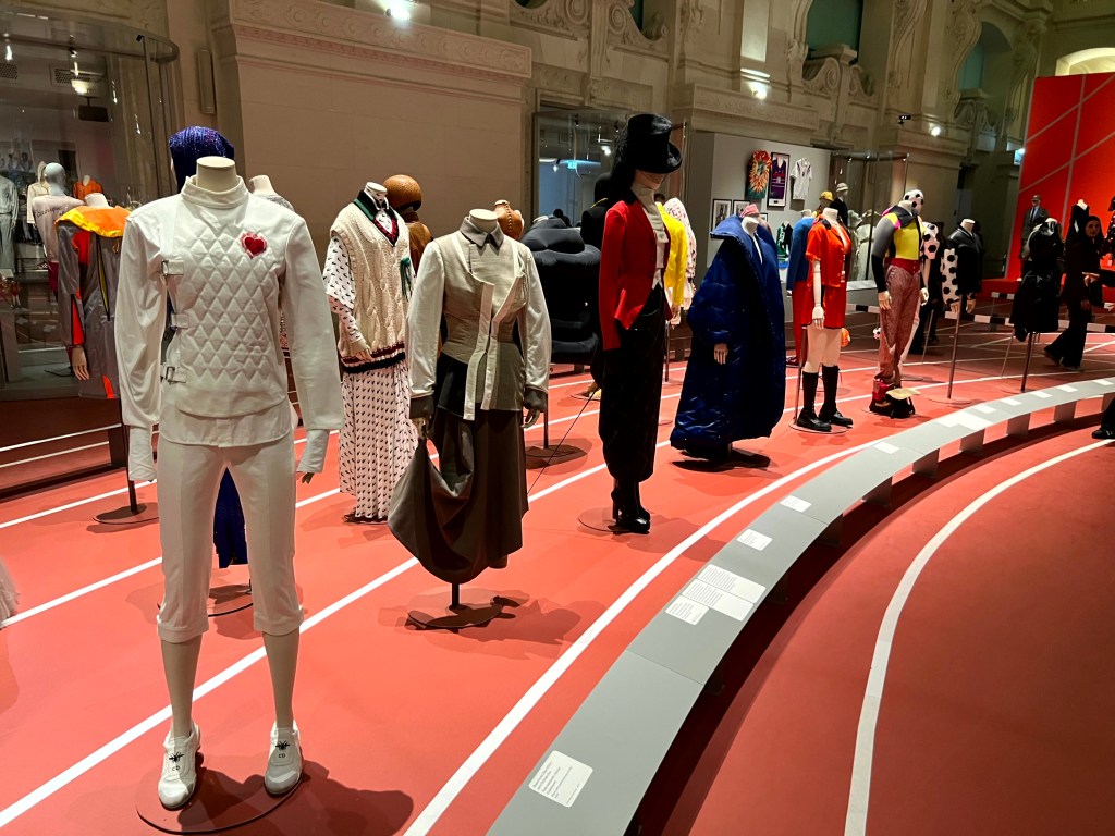 Aan het einde van de tentoonstelling beland je op een hardloopbaan waar kleding van bekende modeontwerpers strijden om de eerste plaats.