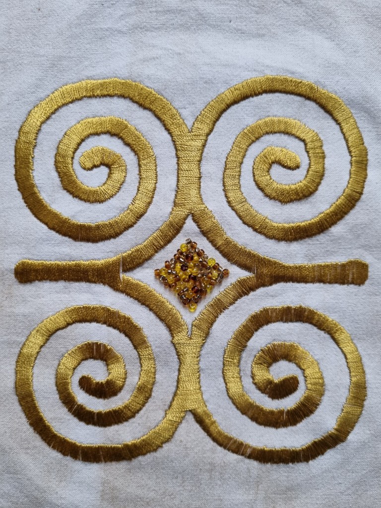 Die tempel is gemaakt van textiel waarop symbolen worden geborduurd met gouddraad. Er borduren zo’n 1300 mensen mee aan dit project.