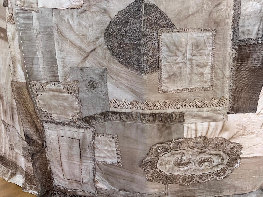 Je zou kunnen zeggen dat het mijn biografie is in stoffen en draden. Welke verhalen dat zijn vertel ik hier niet omdat de lezing ergens dit voorjaar nog herhaald gaat worden in Nijmegen.