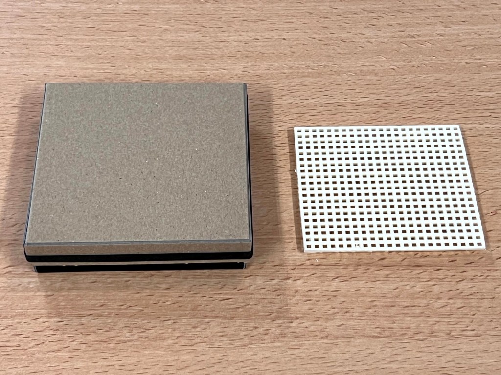 Voor alle 20 deelnemers, 19 vrouwen en ik als enige man, stond een doosje klaar waar een ministeck matje naast lag. Een ministeck matje, wie kent het nog? Ik wel!