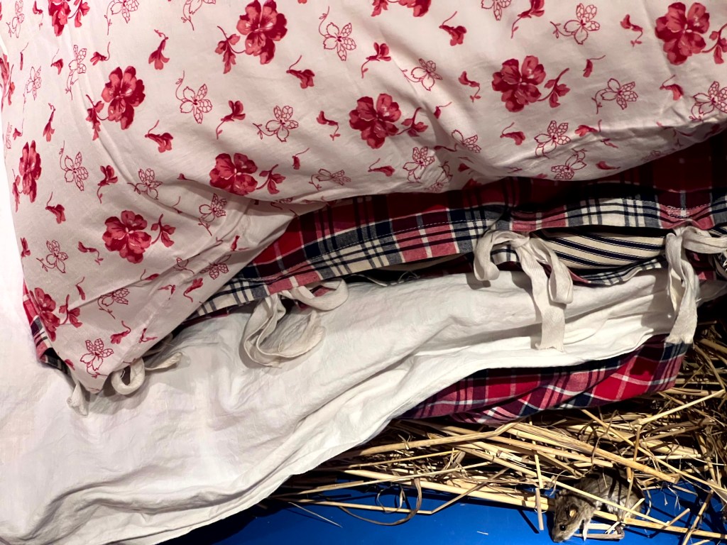 Lijsje, geboren in 1950, heeft daar een mooi verhaal over. ’Ieder voorjaar, met schoonmaken, kregen we nieuw stro in de bedstee. Op een keer, toen we het oude stro weghaalden, vonden we er een muizennest in met van die kleine blote muisjes. We zeiden tegen elkaar: dat was dus dat gepiep van de afgelopen nachten.’
