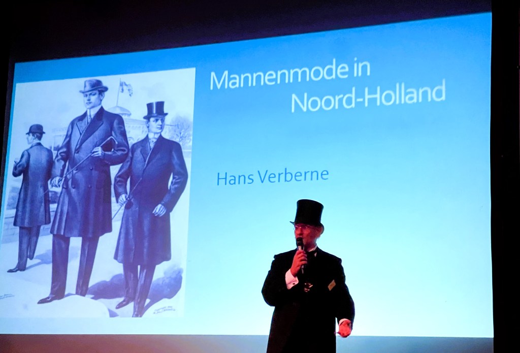 Hans Verberne, groot kenner van de streekdracht van Noord-Holland, vertelde boeiend over de ontwikkeling van mannenmode in Noord-Holland. In zijn lezing kwamen schitterende woorden langs zoals: bulloper, melkersjasje, hannekemaaiers en kassieventers.