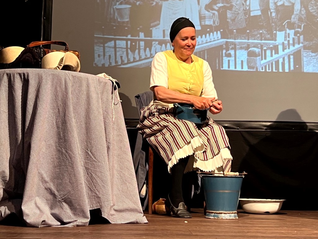 Terwijl de rijke mevrouw in het korset werd geregen, zat de gewone vrouw al een tijdje aardappels te schillen. Mevrouw kreeg een jurk aan en de piepers moesten hun jasje uitdoen.