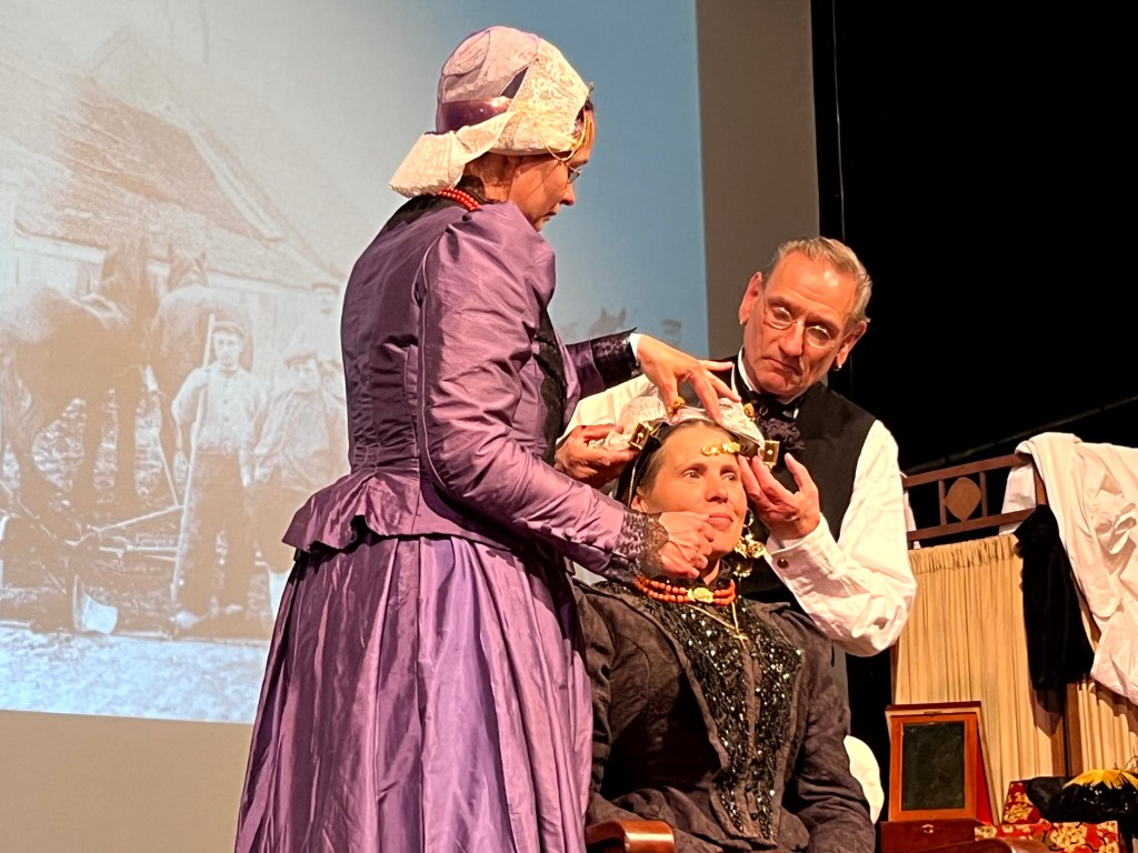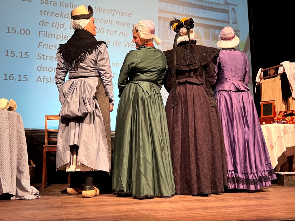 Dat werd verzorgd door de commissie Kap en Dek, een onderdeel van het Westfries genootschap. De leden houden zich bezig onder andere met het maken van replica’s van de Westfriese dracht en hebben grote kennis over al de kledingstukken en sieraden die erbij horen.