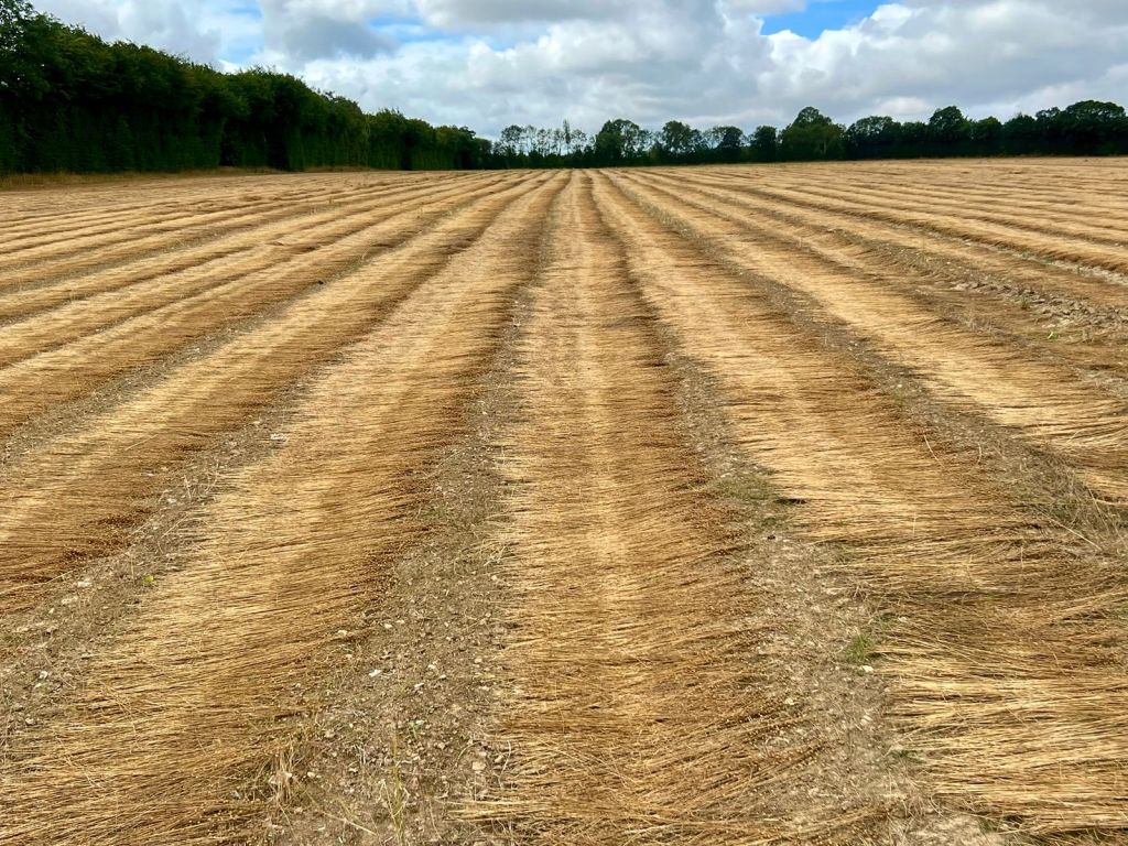 Na ons linnenkoopavontuur zagen we onverwacht een groot vlasveld in Normandië. En daarna nog een. En nog een. Ik had wel eens een klein veld in Vlaanderen gezien, maar deze velden waren aanzienlijk groter. In eindeloze golven lag het gemaaide vlas te drogen. Op Facebook schreef ik: