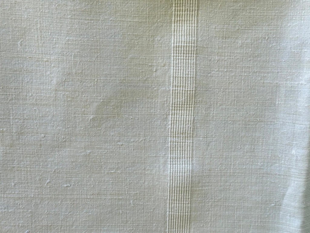 Ondertussen zitten er in mijn verzameling linnens in allerlei diktes en kwaliteiten. Ik heb servetten van schitterende handgeweven grof linnen dat ruw aanvoelt en linnen lakens die als zijde zijn. En alles er tussenin.