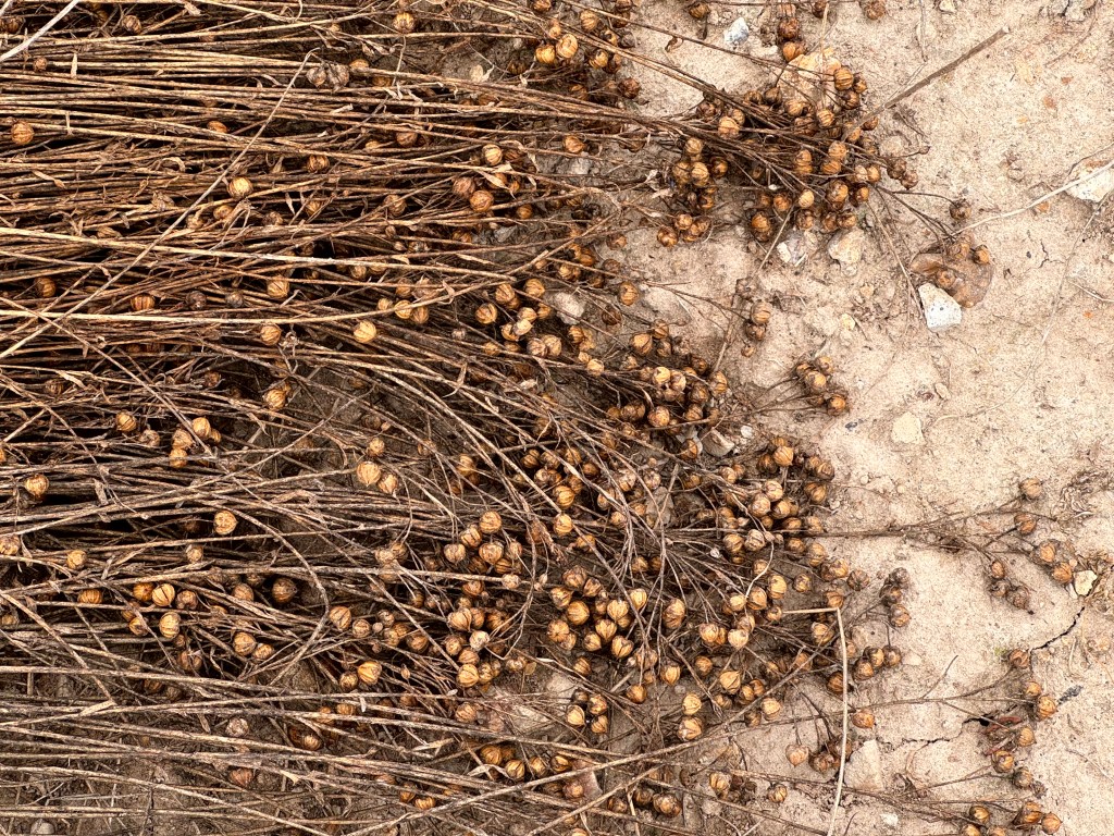 een kolkende zee van droog vlas