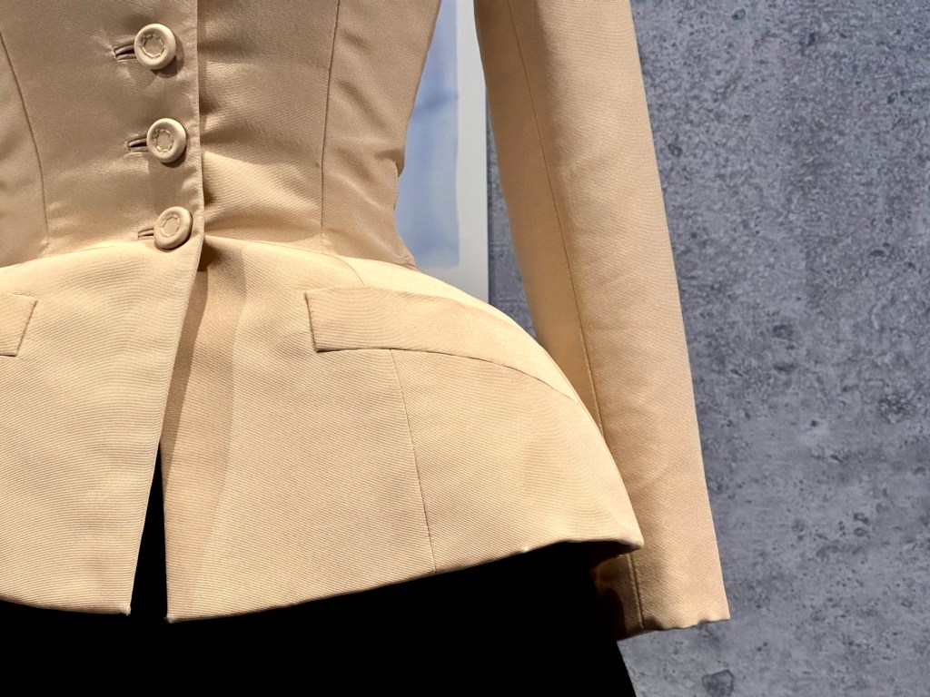 Natuurlijk is hèt meest iconische ontwerp te zien: het Bar-ensemble. Op 12 februari 1947 om 10.30 uur showde Christian Dior zijn eerste haute couture voorjaar/zomer collectie in zijn salon aan de Avenue Montaigne nummer 30. Het was er vol mensen die gespannen zaten te wachten.