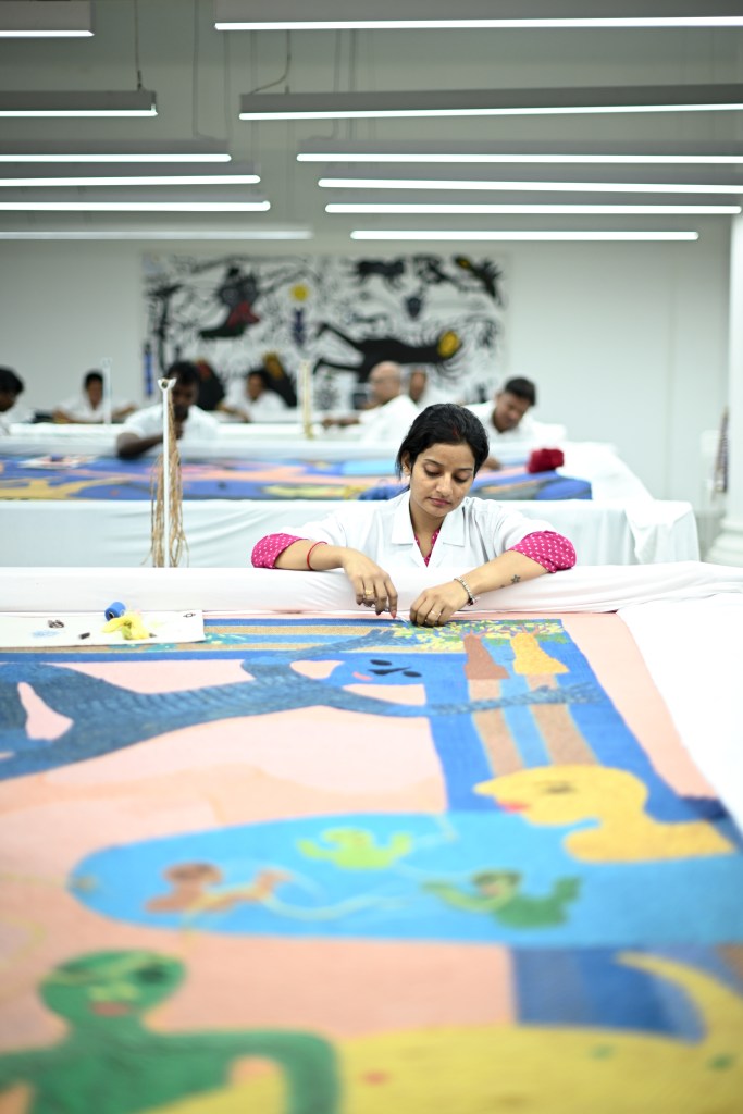 In drie maanden tijd, totaal 218.000 uren, zijn ze gemaakt door vijftien meesterborduurders/sters van de Chanakya ateliers en veertien studenten van de Chanakya school of Crafts.
