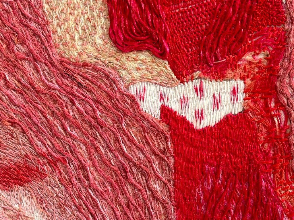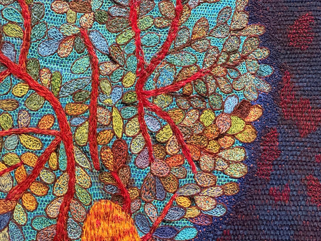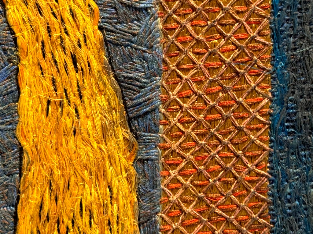 Ook hier weer al die verschillende steken en structuren, steek voor steek geborduurd.