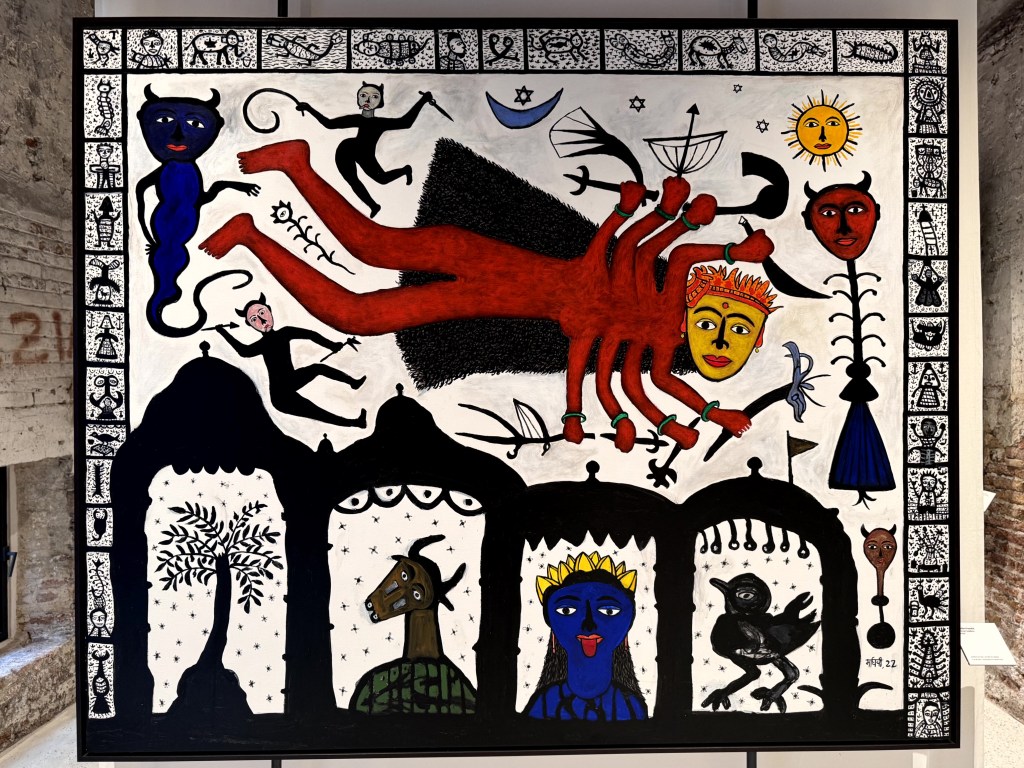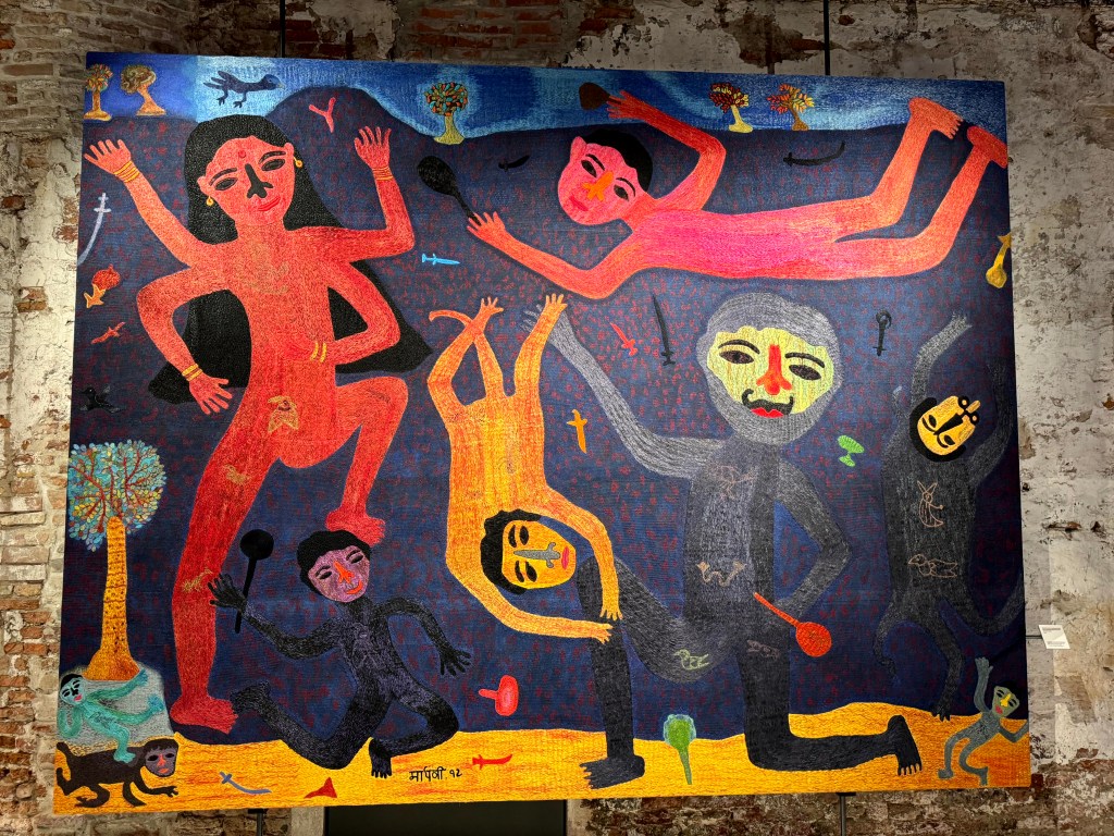 Haar werk vertelt verhalen over goden en godinnen, over het dagelijks dorpsleven, feesten, festivals en over haar jeugd. Kleurrijk is het allemaal, en vol magische geheimen voor een westerling als ik.