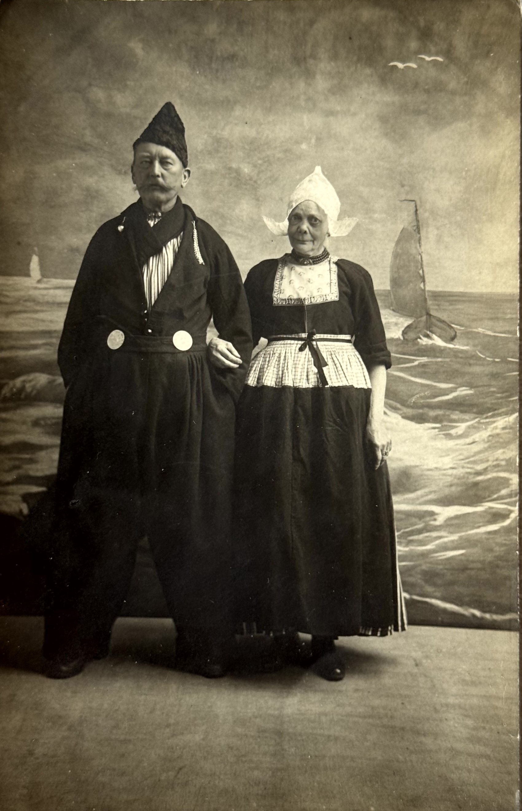 In de fotostudio’s Zwarthoed en Karels kon je je in je eentje of als stel laten fotograferen. Natuurlijk trok je voor zo’n staatsieportret je mooiste kleren aan. Een aantal van die foto’s zaten in de kavel die ik kocht. Ik dateer ze rond 1920-1940. Dat fotograferen gebeurt nog steeds als toeristische trekpleister.