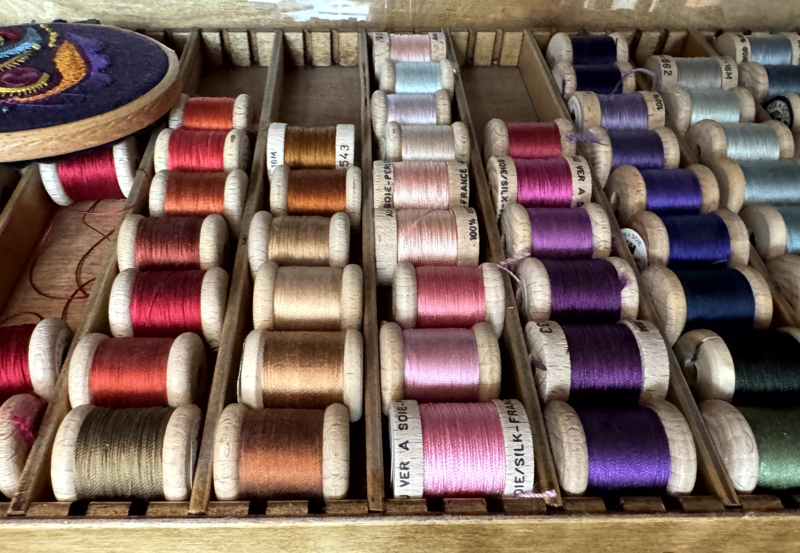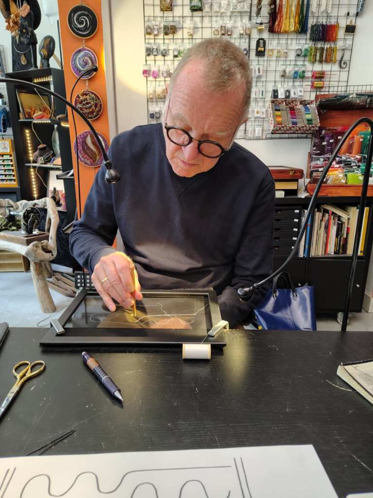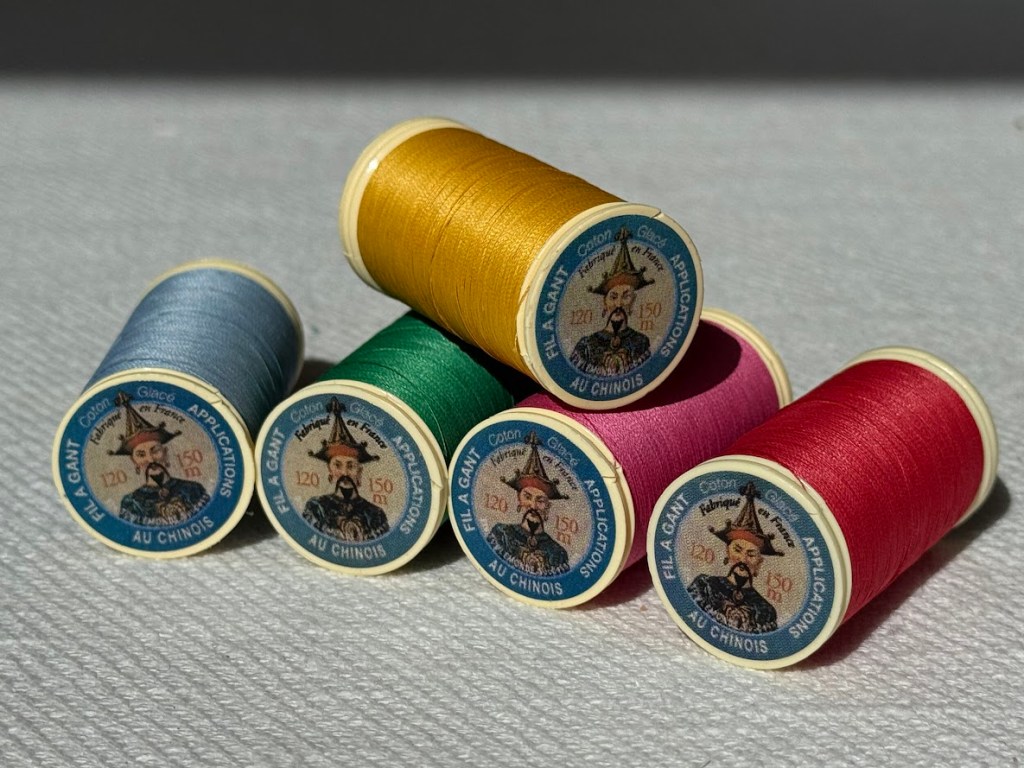 Ik kocht daarvoor nog wat kleurig glanzend garen met de naam ‘Fil a Gant’ dat ook gebruikt wordt in de grote borduurateliers voor haute couture in Parijs.