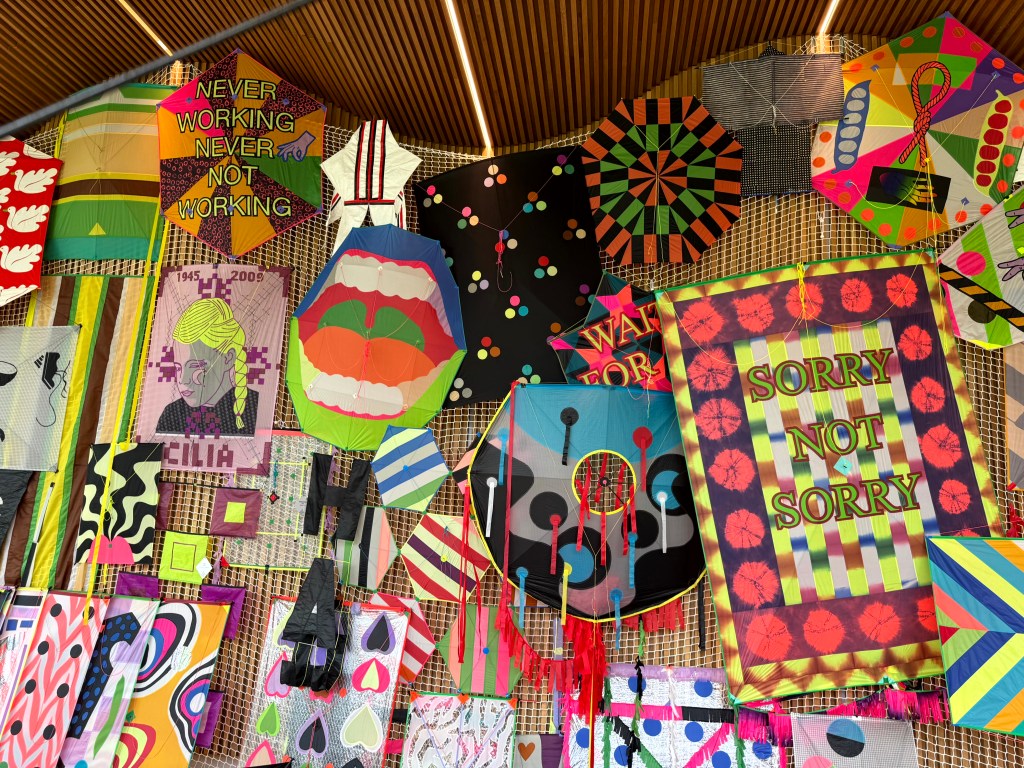 Dat er ook andere vliegers gemaakt worden, kun je tot en met 3 augustus 2025 zien in Museum Voorlinden. Daar heeft de Kite Club, bestaande uit de kunstenaars Liesbeth Abbenes , Maurice Scheltens en Bertjan Pot hun tijdelijk clubhuis gevestigd. Een clubhuis als een atelier; elke dag is er ook nog een gast-kunstenaar of -vormgever aanwezig die met hun hulp een speciale vlieger maakt.