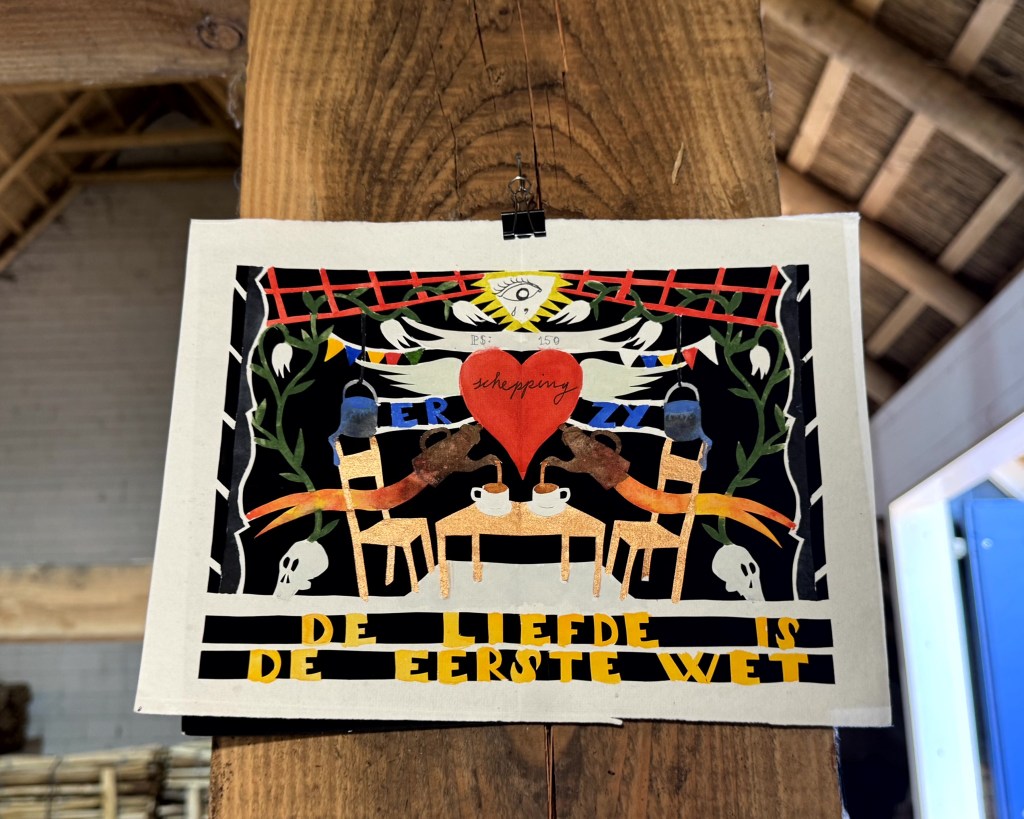 Je hebt het vast wel eens meegemaakt. Je bent aangekomen op een plek en je maakt iets eenmaligs bijzonders mee. Dat overkwam me afgelopen zaterdag in Rouveen. Op Instagram had ik gelezen dat kunstenaar Daphne van den Berg één dag haar werk zou exposeren aan de Oude Rijksweg 272. Streekdrachtexpert Jacco Hooikammer zou er een lezing geven over de kraplap en singer-songwriter Broeder Dieleman zou ook van de partij zijn. Het leek me een mooie gelegenheid om haar werk nu eens in het echt te zien.