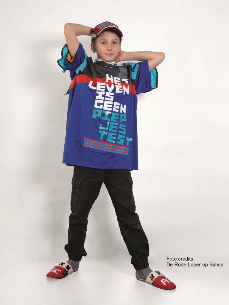 Het sportshirt met de fantastische tekst ‘HET LEVEN IS GEEN PIEPJESTEST’ laat zien dat kinderen goed kunnen nadenken over het leven. Een toptekst waar ook volwassenen veel aan kunnen hebben.