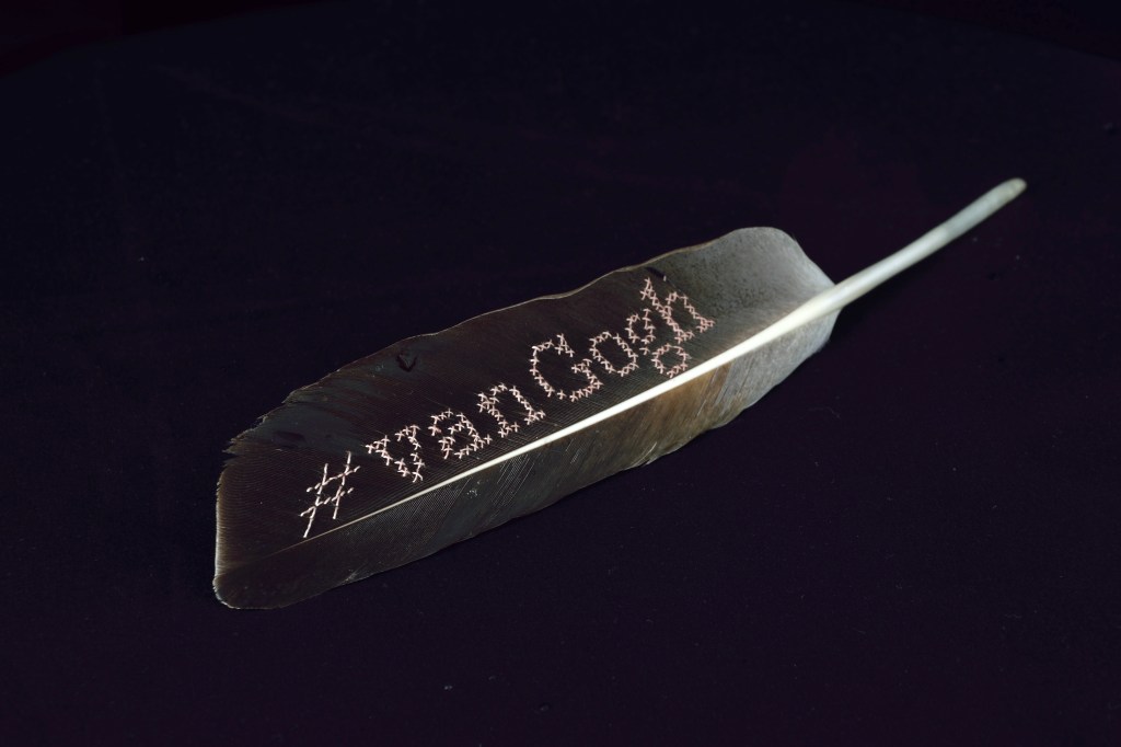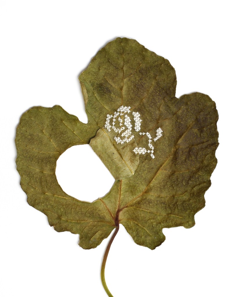 Ze borduurt op ijs, op veren, op foto’s, op verfkwasten, lood, bladeren en zelfs op stenen.