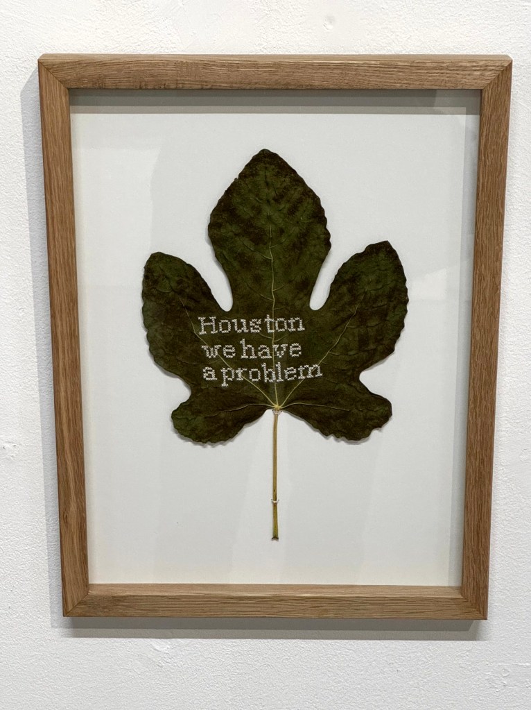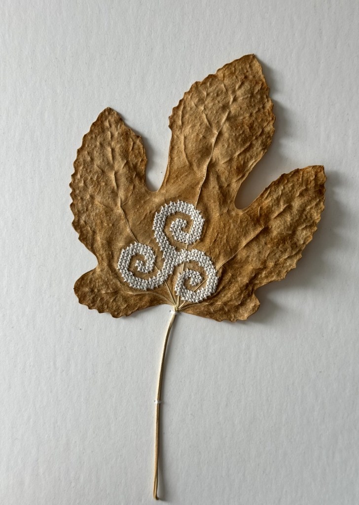 Haar serie borduursels op bladeren met als titel ‘As time goes by’ is prachtig. Ze werkt met het gegeven dat bladeren die drogen van kleur en van beeld veranderen.