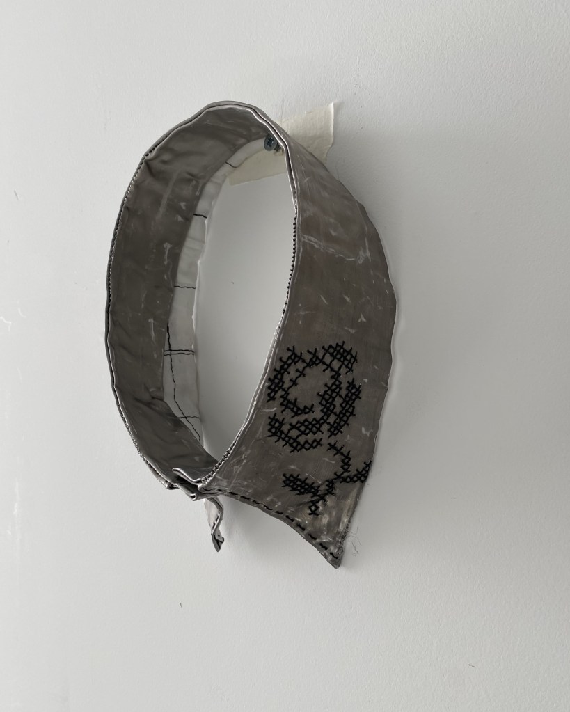 Soms kom je iemand tegen met wie je direct een klik hebt. Dat gebeurde me op 29 maart bij een tentoonstelling van het IJ Kunst Collectief in Loods 6 in Amsterdam. Daar zag ik werk van Renee Toonen. Zij heeft onder de naam Ikborduurenjij een Instagramaccount waarop je kunt zien dat ze haar kruissteken soms op materialen zet die niet voor de hand liggen.
