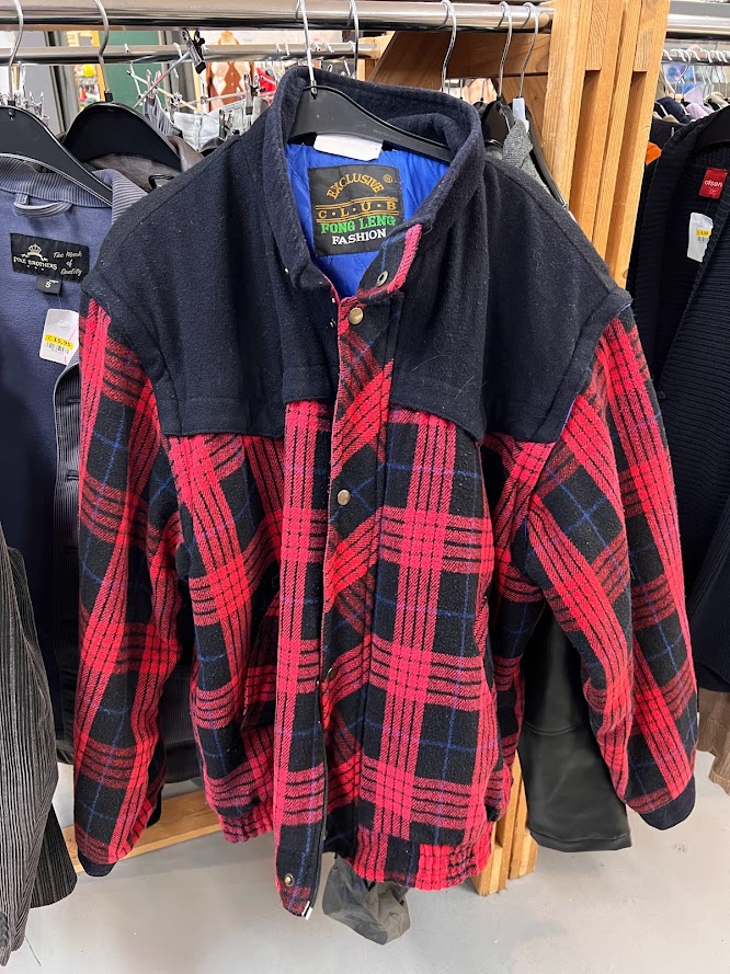 Soms kom je een commercieel ontwerp van haar tegen in een kringloopwinkel, zoals deze geblokte jas. Die heb ik overigens laten hangen omdat hij wel erg versleten was.