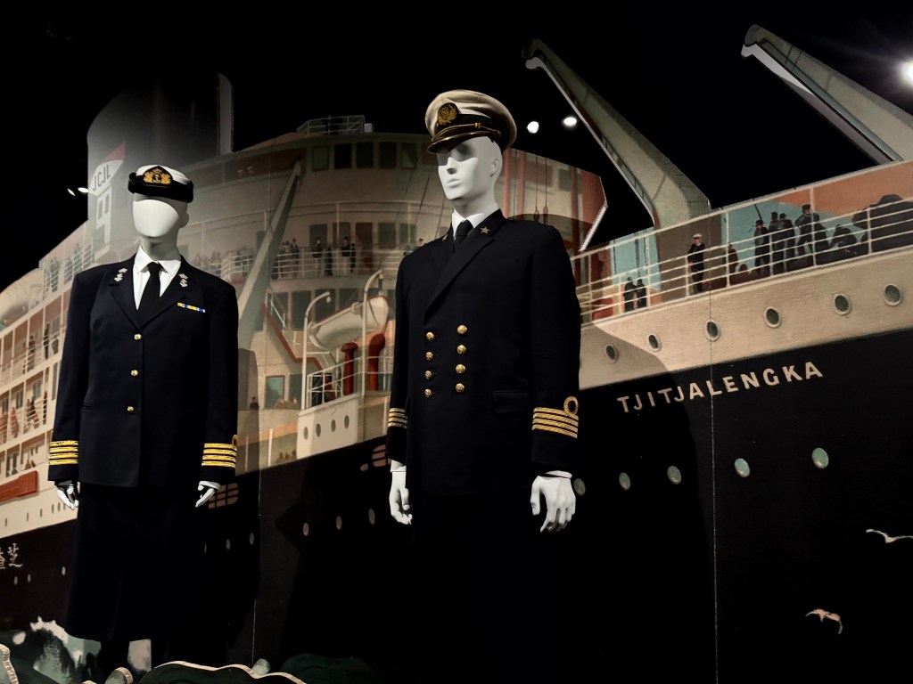 In de volgende ruimte zijn naast officiële marine-uniformen ontwerpen te zien die daarop geïnspireerd zijn.
