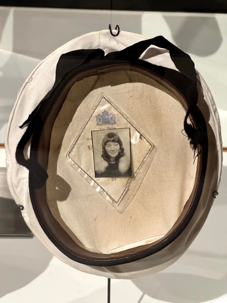 In ieder stadjes een ander schatje – dat is een gezegde dat uit de zeevaartwereld komt. Zal vast wel waar wezen, maar in deze matrozenpet was een pasfoto genaaid van zijn liefje aan de wal. Zo was zij ten allen tijde op de woeste zee in zijn gedachten.