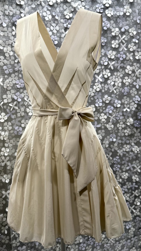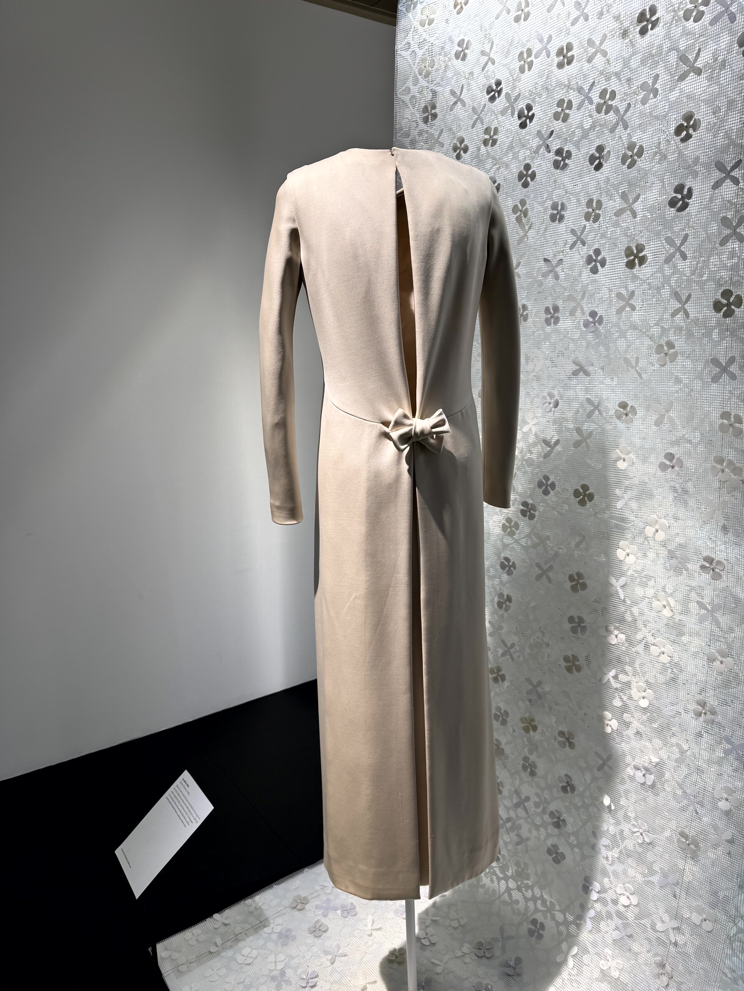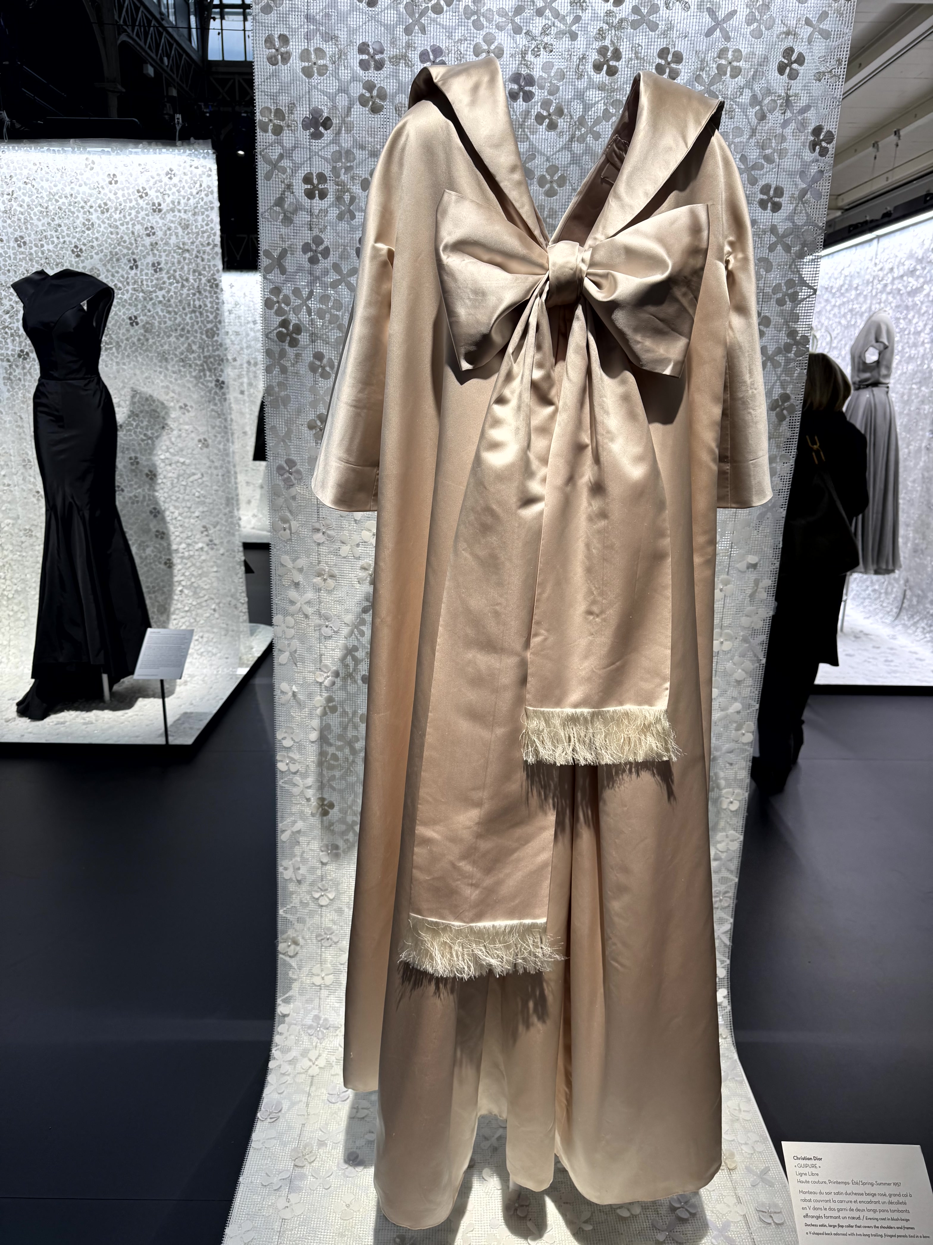 De strik, een kenmerk van Dior, groot gebracht op een avondmantel uit de lente/zomer collectie van 1957 en klein op een zijden avondjurk van Alaïa uit 1965.