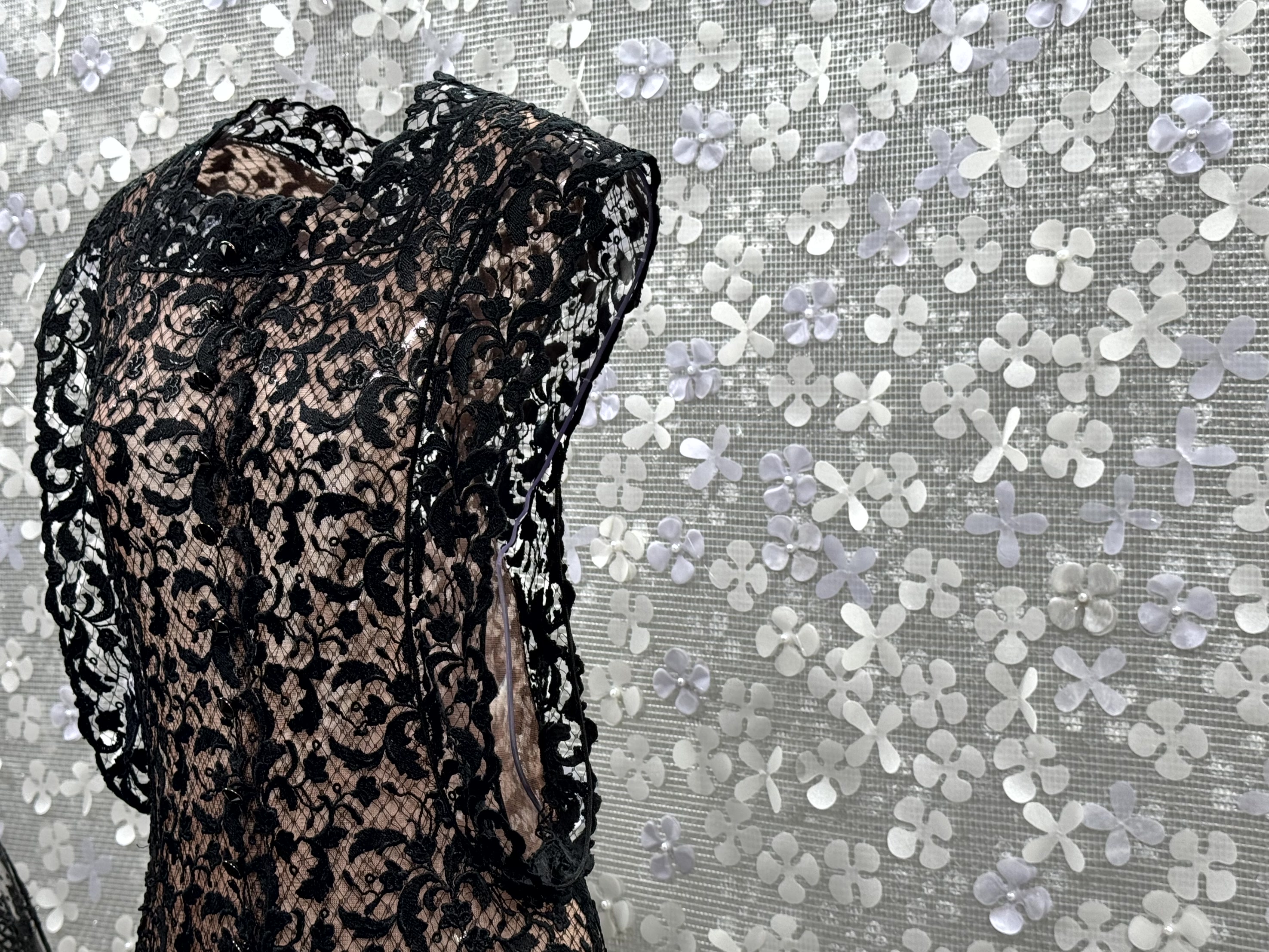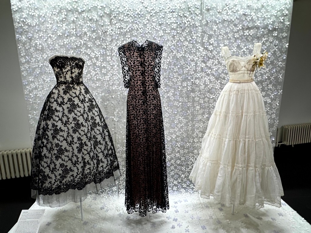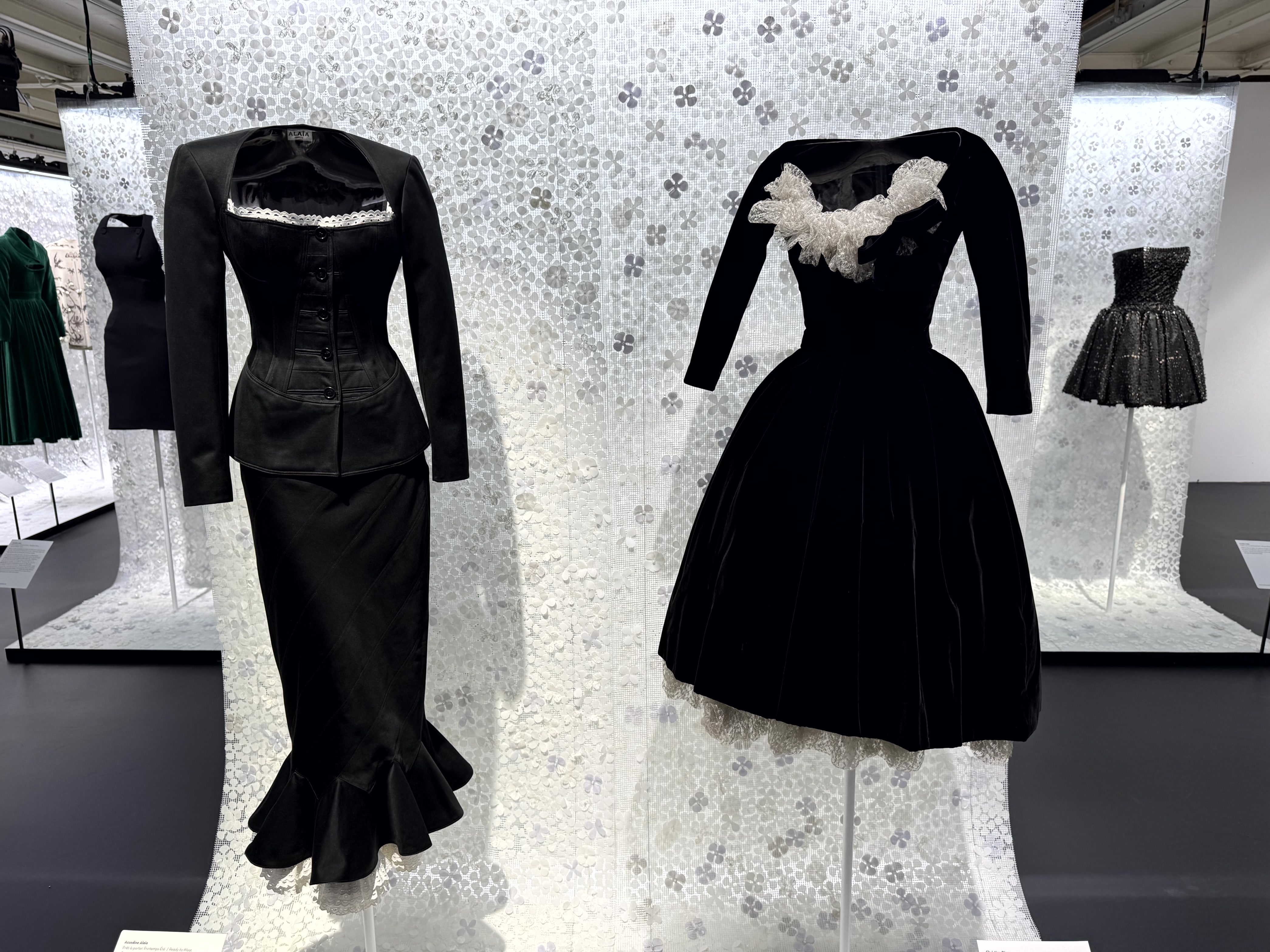 Een deel van zijn verzameling van 500 Dior’s is nu te zien, gecombineerd met ontwerpen van Alaïa. In de ruimte waar ooit zijn modeshows werden gehouden, staan nu 70 ontwerpen van de twee modegrootheden steeds naast elkaar.