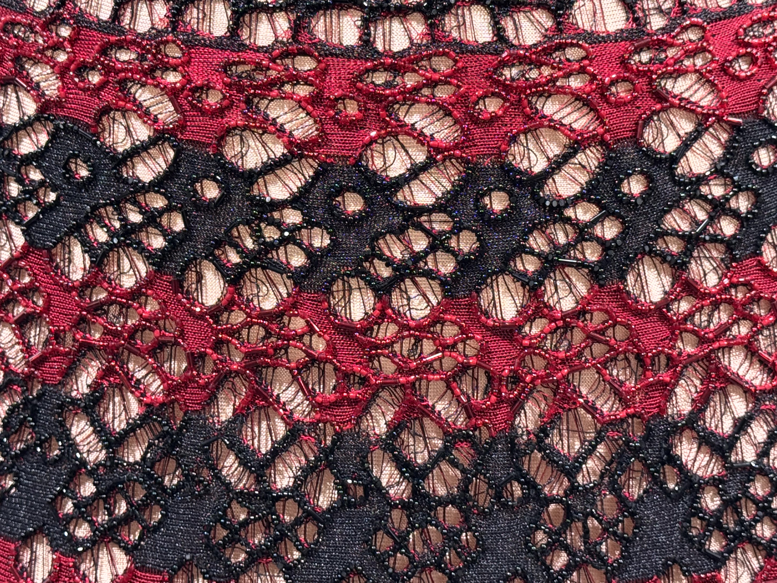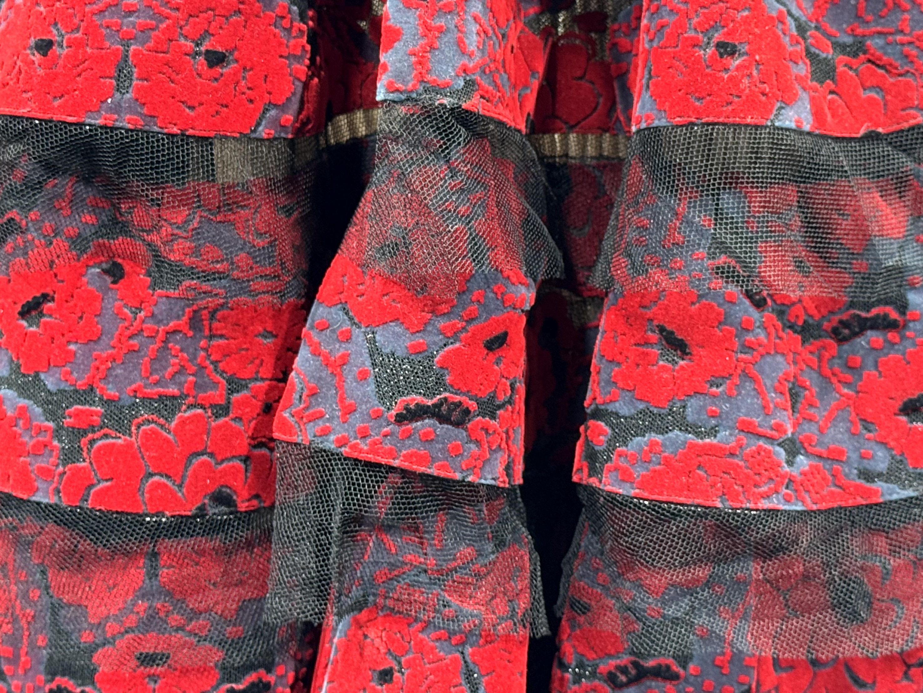Beide ontwerpers gebruikten de allermooiste en meest bijzondere stoffen. In de zwart-rode serie was dat goed te zien. Links en midden Alaïa en rechts Dior.