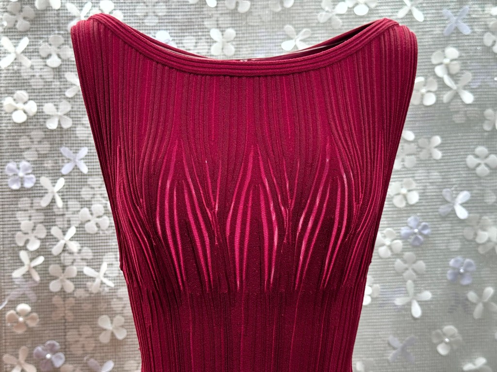 Van sommige ontwerpen van Alaïa zou je kunnen zeggen dat ze sexy zijn, maar ze zijn absoluut nooit ordinair. Dat is goed te zien in het zwarte mantelpakje met een klein kanten strookje boven de boezem. Datzelfde geldt ook voor Dior zoals te zien is in de bovenstaande rechter jurk met accent op het decolleté. Alaïa maakte trouwens niet alleen kleding voor slanke vrouwen. Elke vrouw die bij hem een kledingstuk liet maken, kreeg een perfect zittend kledingstuk.