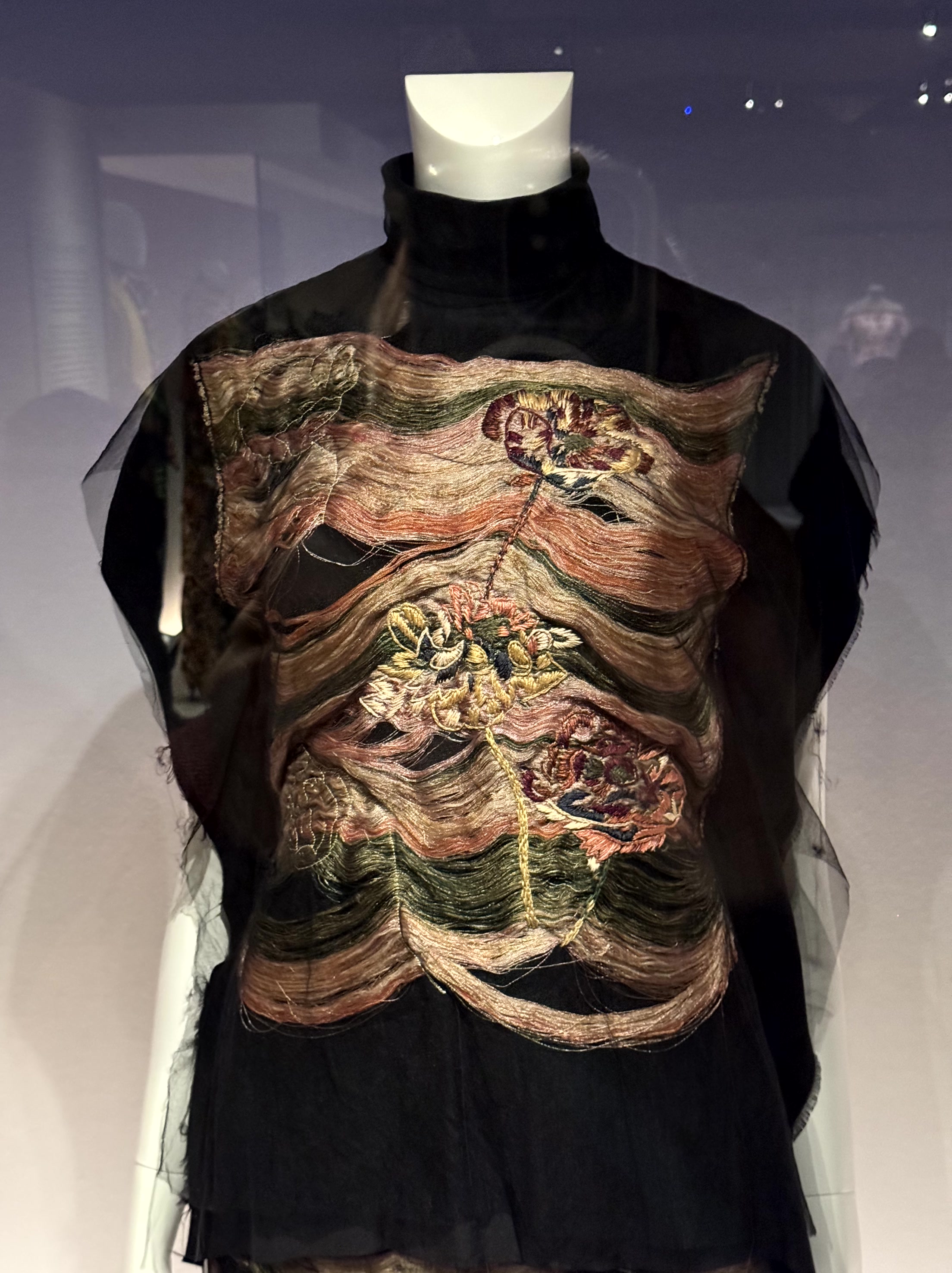 Erg mooi vond ik het broekpak van Alexander McQueen voor Givenchy: op een klassieke ruitstof zijn blauwe bloemen geborduurd. Daarnaast is een 18de-eeuws herenvest geplaatst, met bloemen geborduurd. Een prachtige combinatie die helder laat zien hoe inspiratie werkt.