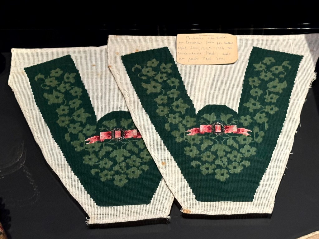 En ik zag 19de-eeuwse pantoffels waarvan de stof al geborduurd is maar die nooit in elkaar gezet zijn.